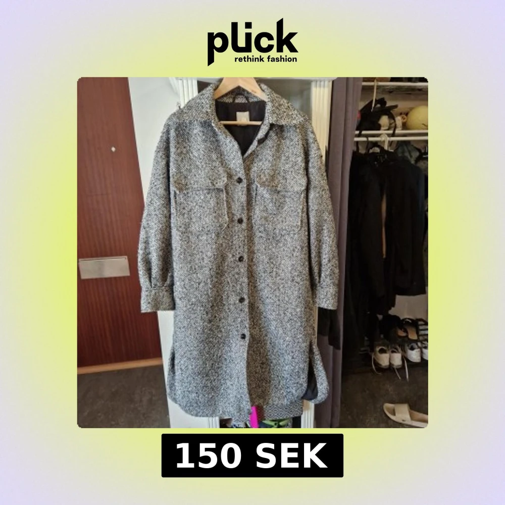 Stilren oversize kappa från H&M i gråsvart melerad . Jackan har stora bröstfickor, knappar framtill och klassisk krage. Perfekt för lager-på-lager och har en loose passform med långa ärmar och slitsar i sidorna.