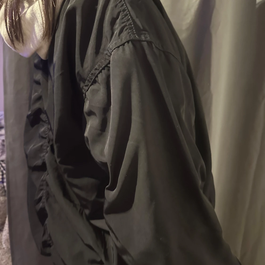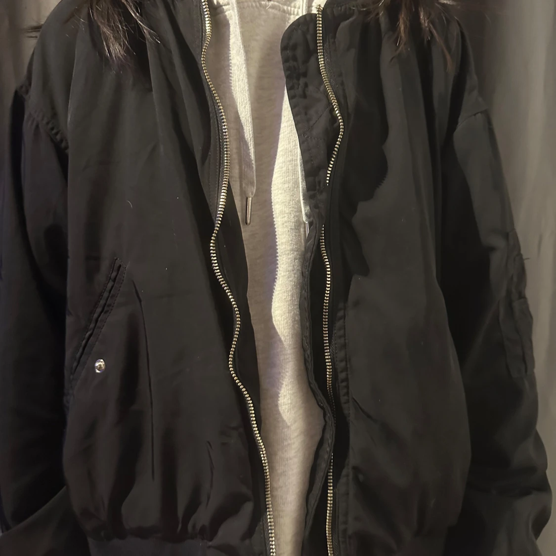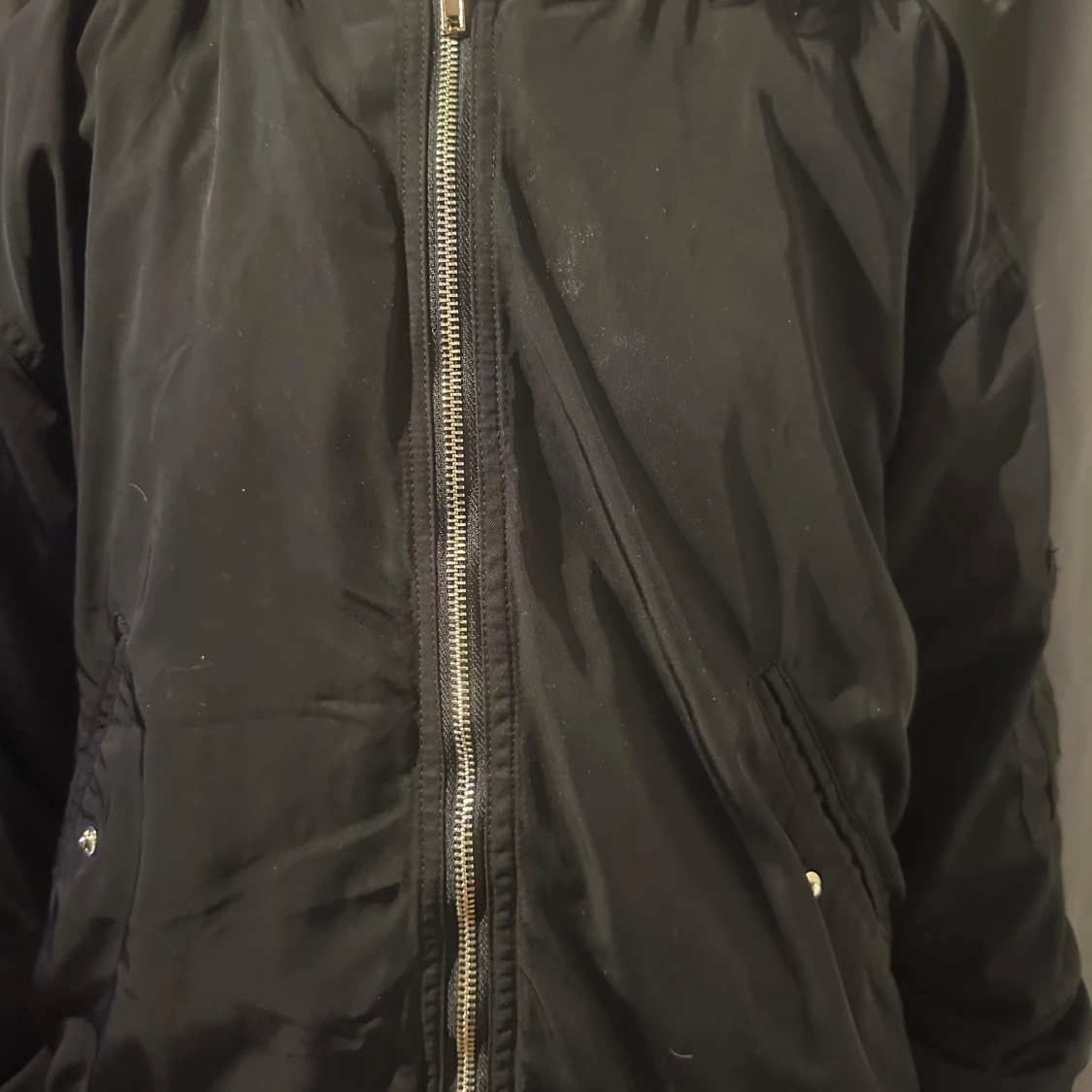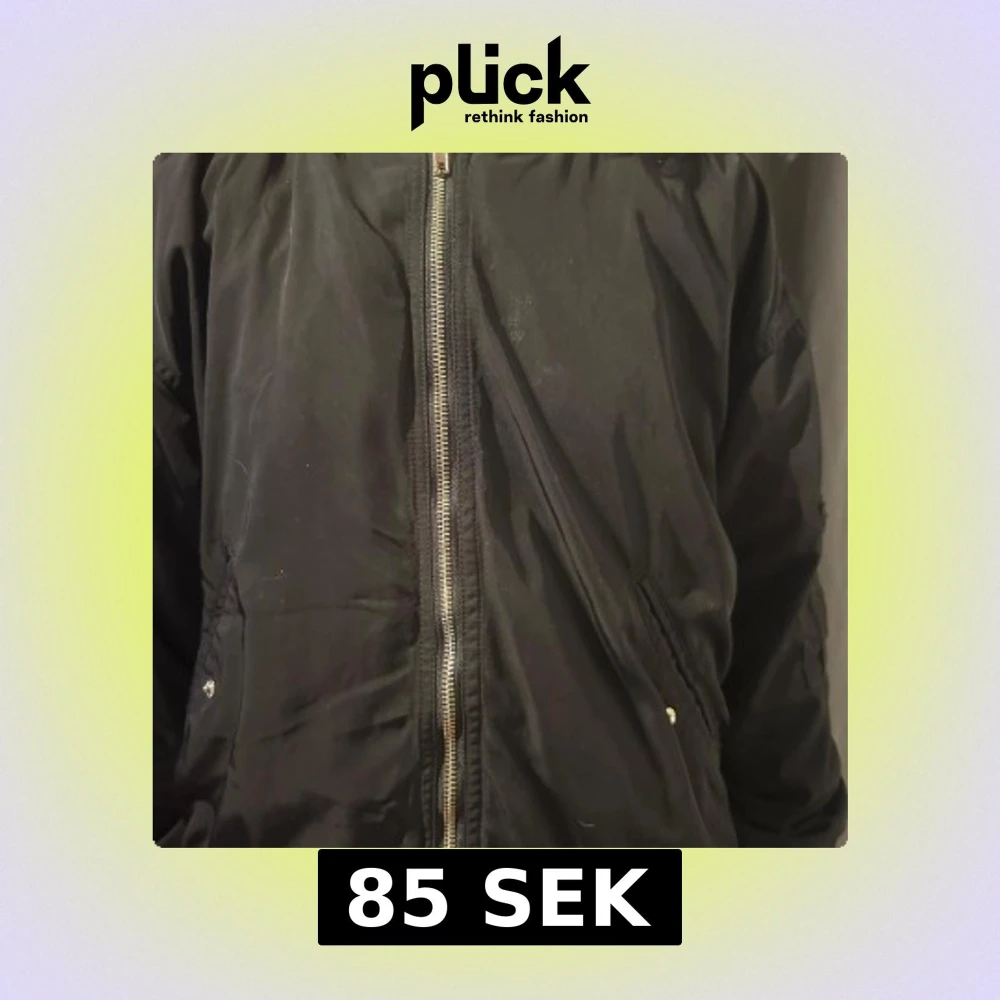 Snygg svart bomberjacka med dragkedja framtill och ribbade muddar. Jackan har en klassisk design med två fickor med knappar. Perfekt för en cool och avslappnad stil.