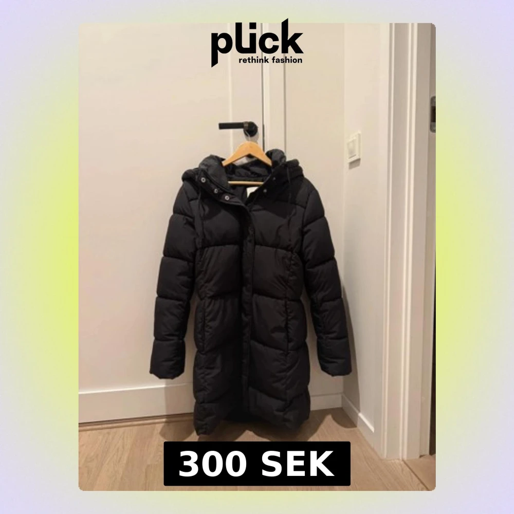 Säljer en svart pufferjacka med huva och snörning. Jackan är lång och med dragkedja framtill. Perfekt för kalla dagar! Den går ner till låren, köpte den av en tjej på Vinted och den var tyvärr för stor!