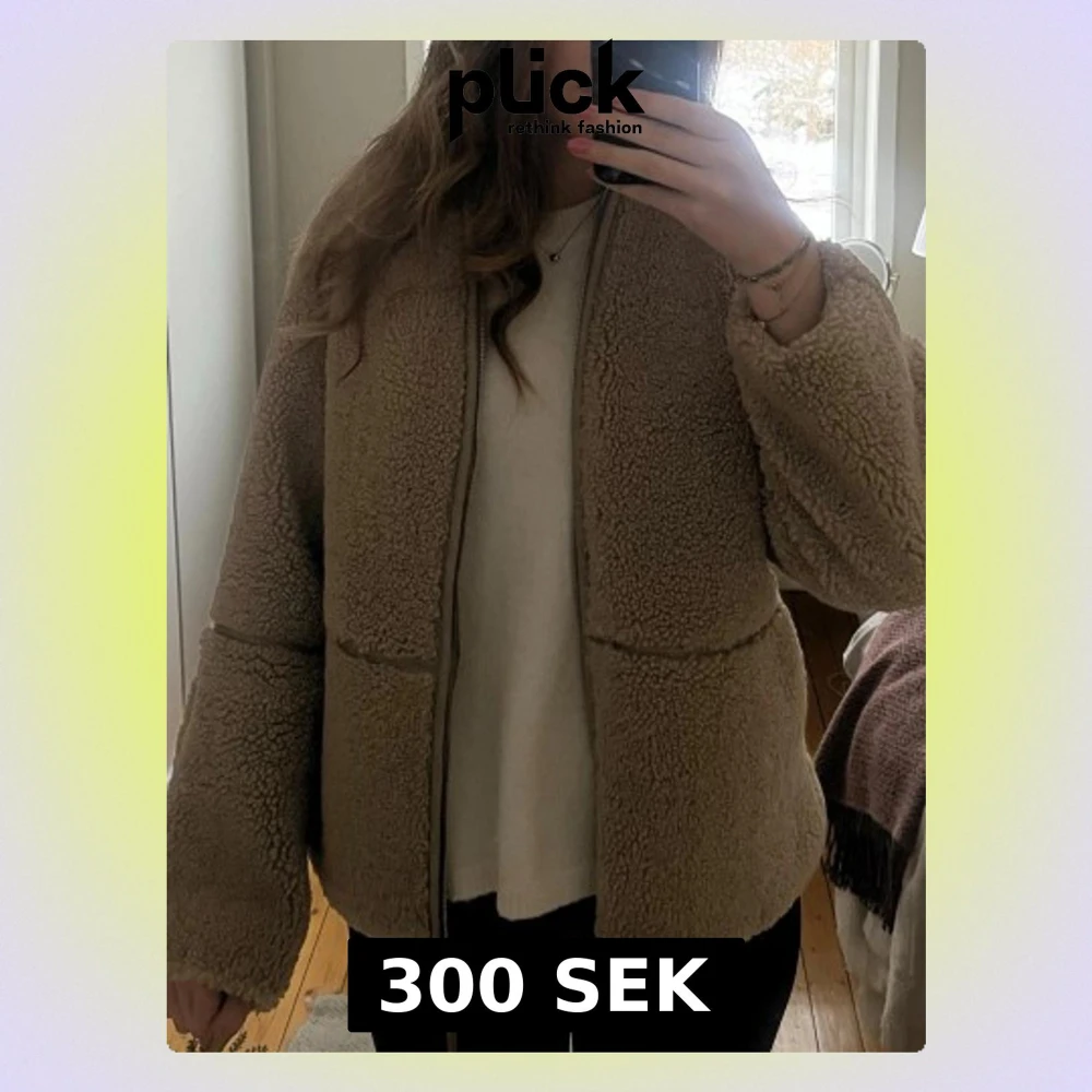 Mysig beige teddyjacka med rak passform. Jackan har en hel dragkedja och är tillverkad i fluffigt teddy-material som ger en avslappnad och trendig look. Perfekt för kyliga dagar och enkel att styla till olika outfits.