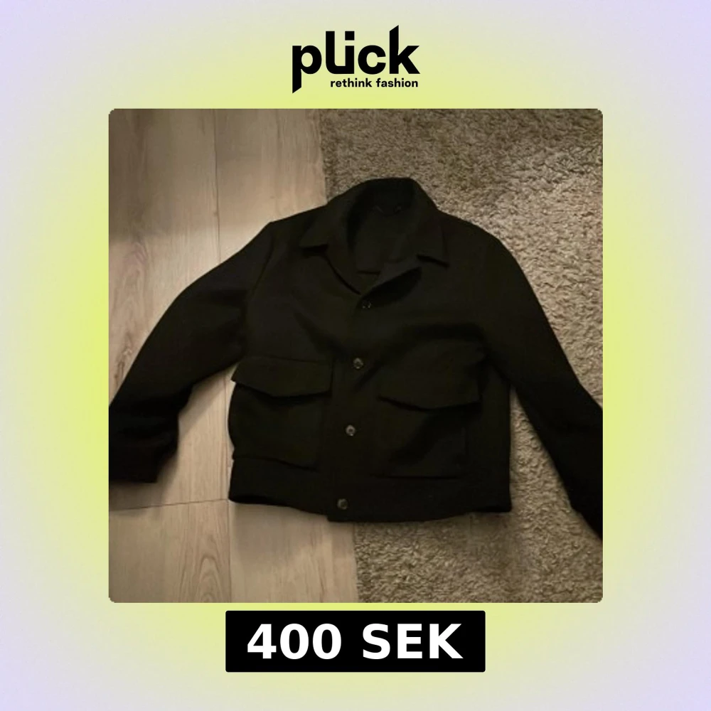 Snygg svart kavajjacka med knappar framtill och två stora fickor. Perfekt för en stilren look. Jackan har långa ärmar och en klassisk krage. org pris 700, mitt pris 400