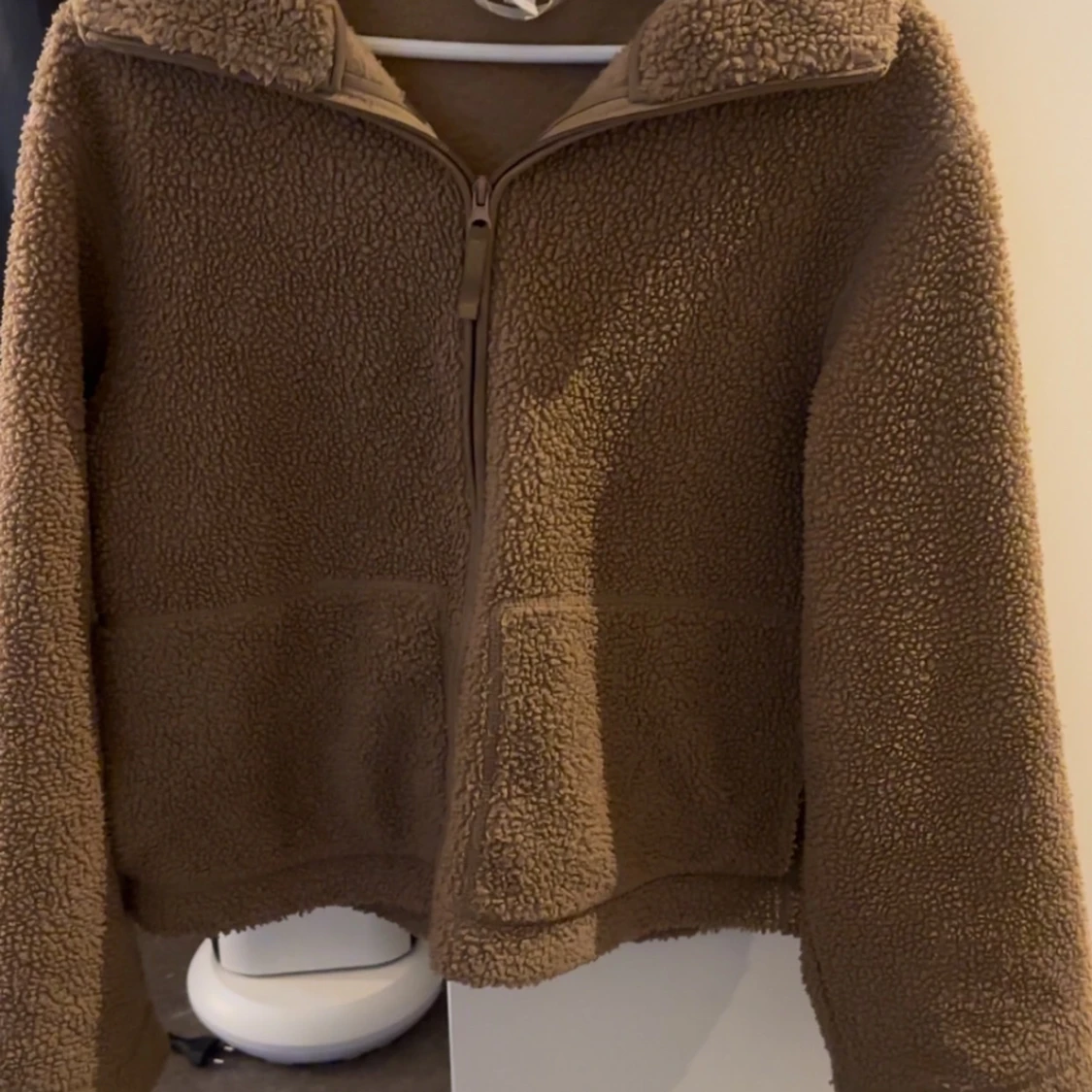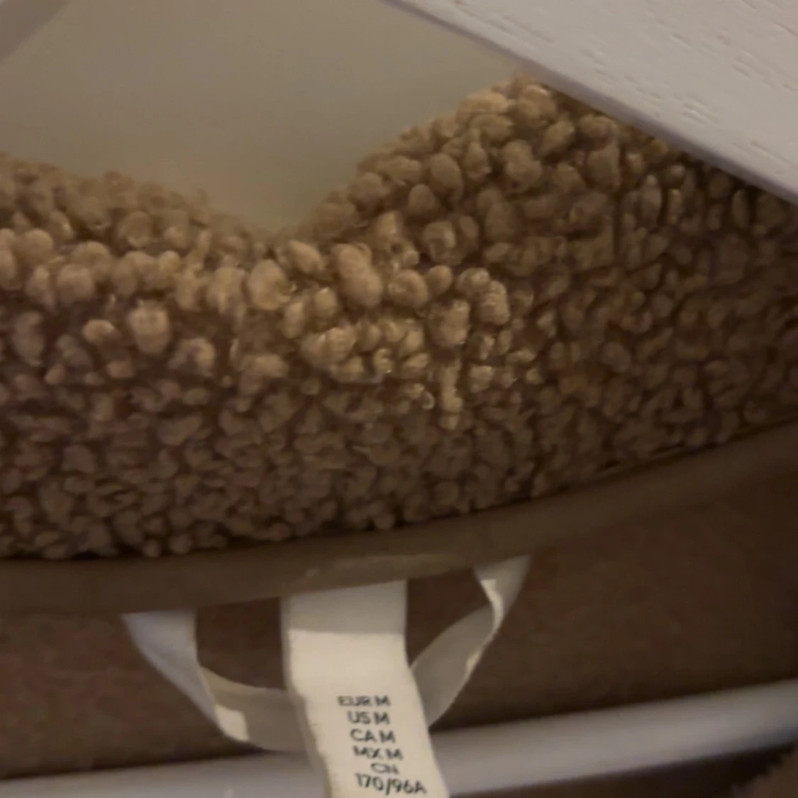 Mysig brun teddyjacka i storlek M, använd några gånger men inget som märks på jackan, sann till storlek