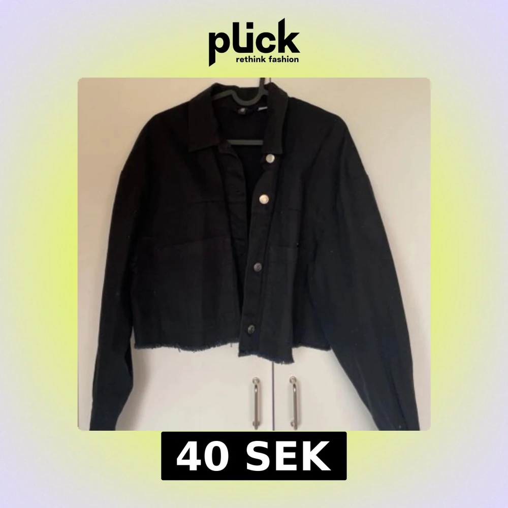 Svart croppad jeansjacka från H&M med silverfärgade knappar framtill och vid ärmsluten.