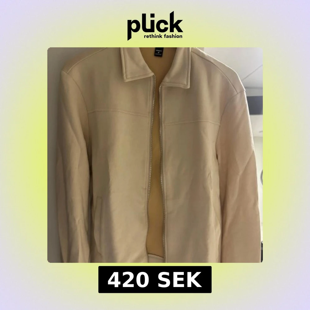 Snygg beige jacka i mockaimitation från H&M. Jackan har klassisk krage, raka linjer och dragkedja framtill. Perfekt för dig som gillar stilren och minimalistisk look. Fodrad insida och två fickor på sidorna. Passar till allt och är lätt att matcha. aldrig använd! Perfekt till sommarkvällarna💛