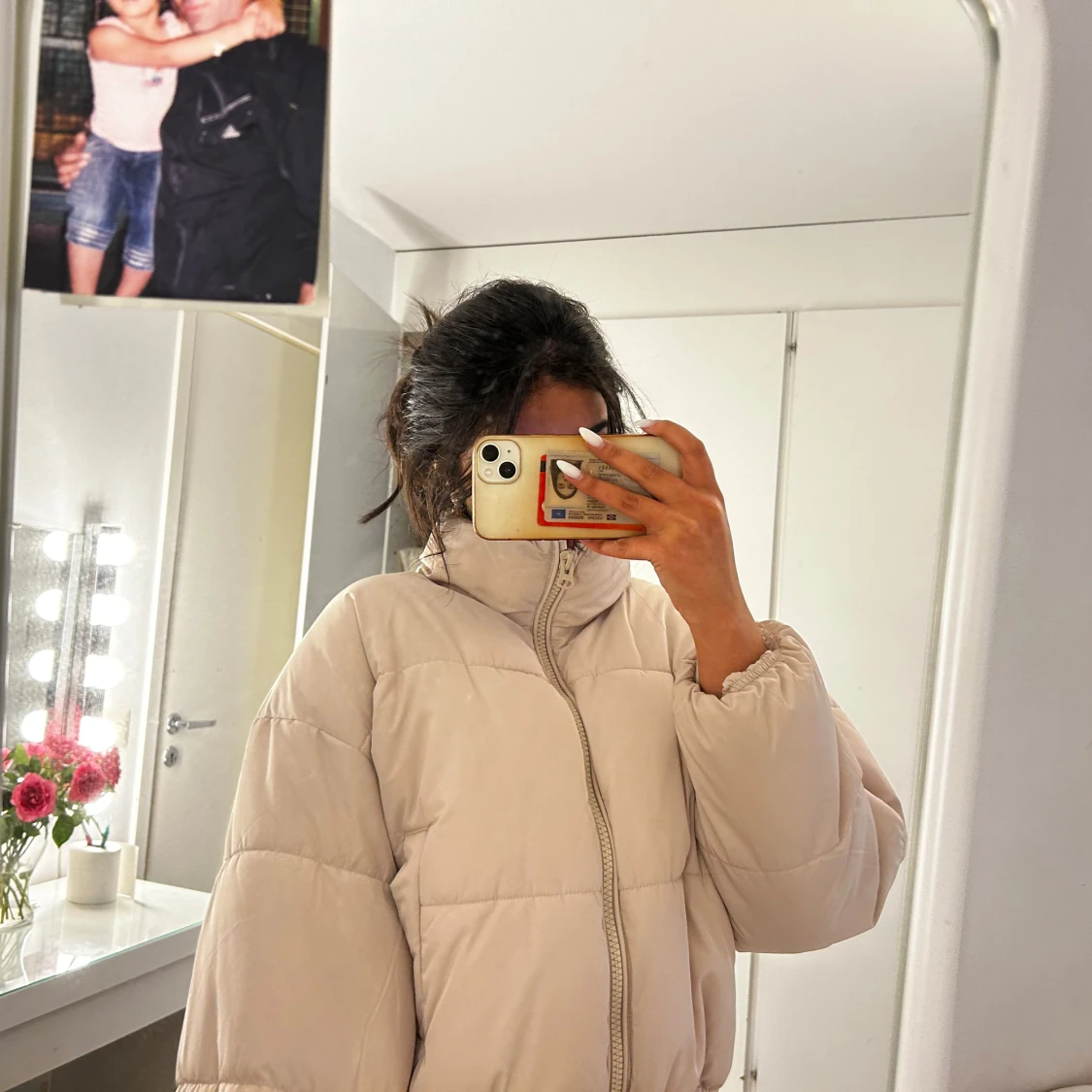 Beige pufferjacka med dragkedja