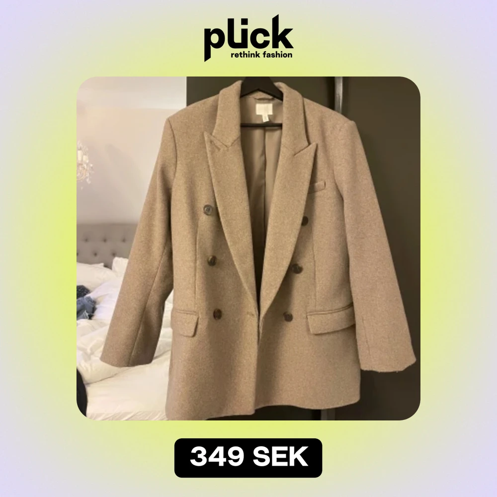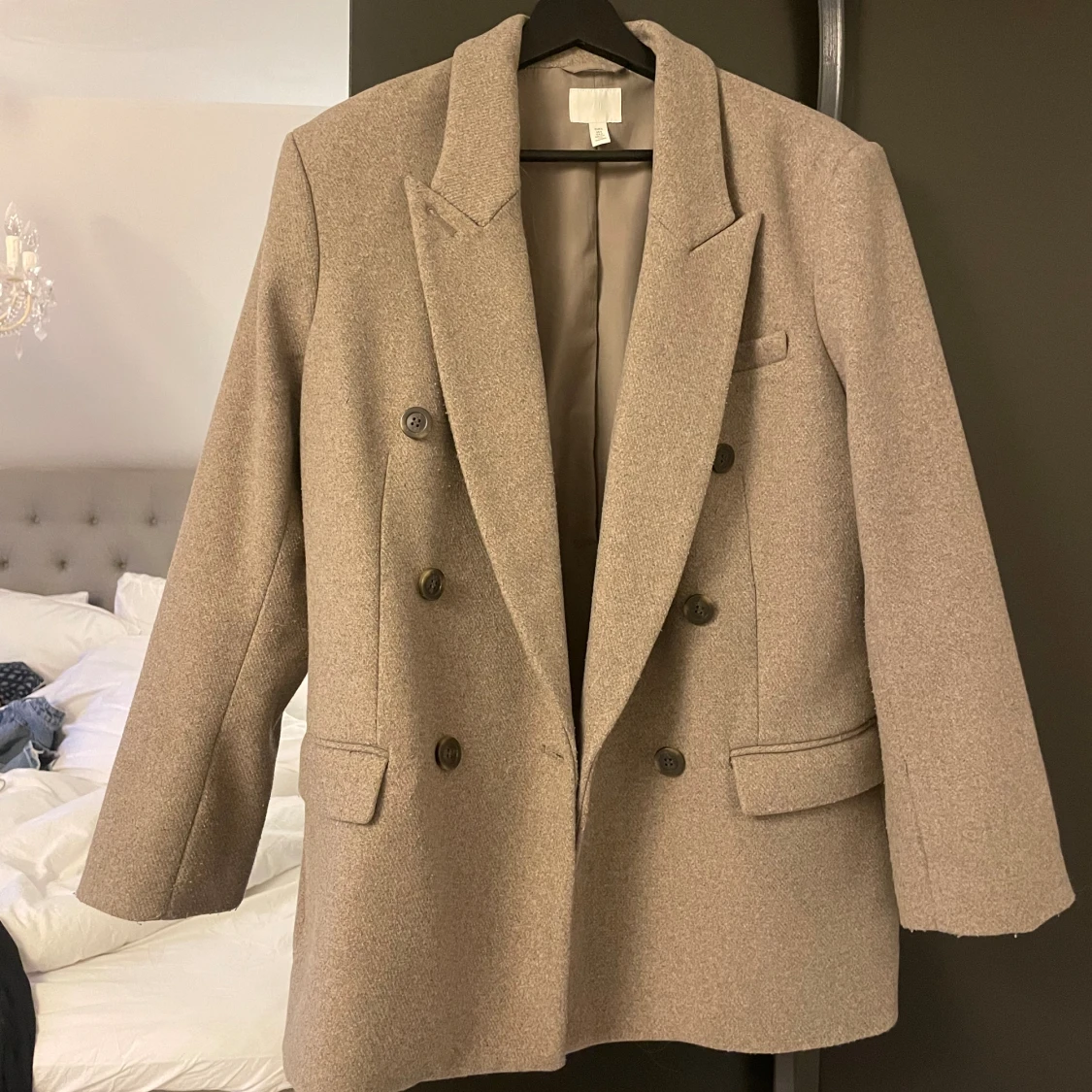 Beige/grå kavajjacka från hm i storlek S (jag skulle säga lite oversized). Inga skador. Nypris 600kr, säljer för 349kr❤️