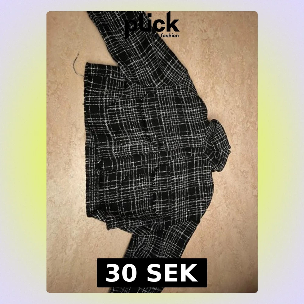 Säljer en svartvit med rutigt mönster tunn kort jacka. Jackan har två stora fickor framtill och en klassisk krage. Det är storlek M men den är liten i storlek.