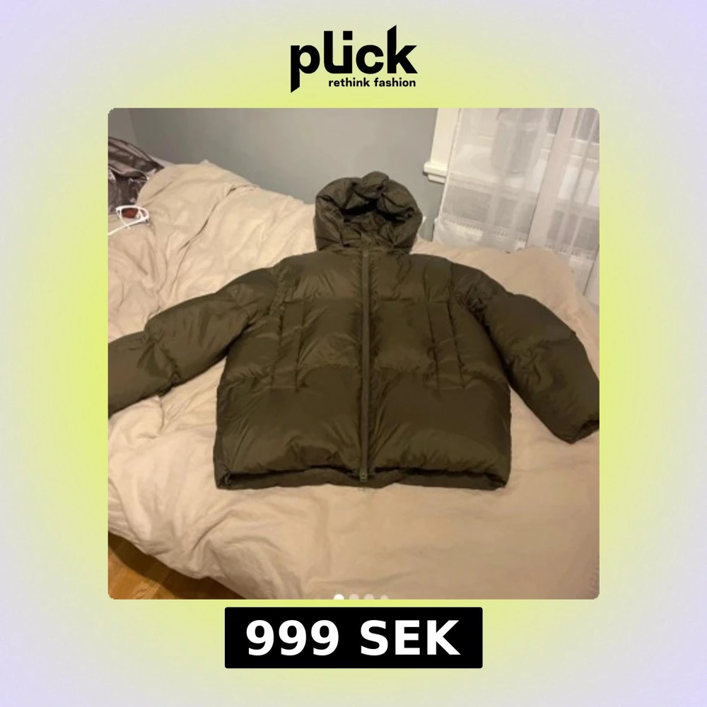 Säljer en olivgrön pufferjacka med huva och dragkedja framtill. Jackan är quiltad och har en loose passform, perfekt för kalla dagar. Denr helt ny utan prislapp och är en äkta dunjacka därav är priset, skriv för fler bilder 💕