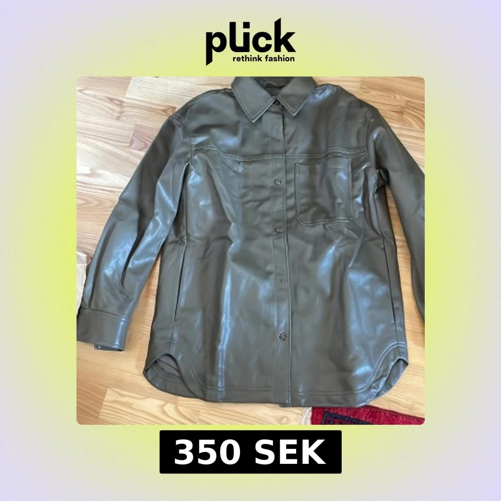 Snygg olivgrön skinnskjorta med knappar och en bröstficka. Perfekt för en stilren look med en touch av edge. Skjortan har långa ärmar och en klassisk krage.