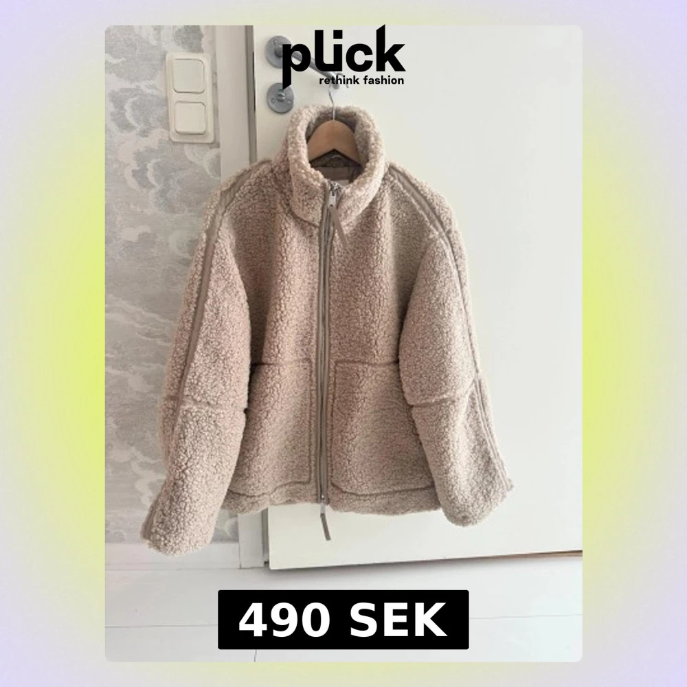 Mysig beige teddyjacka med hög krage och grov dragkedja framtill. Jackan har två stora fickor och en loose passform som ger en chill vibe. Perfekt för kalla dagar och enkel att slänga på över en hoodie. Materialet är fluffigt fleece och ger en skön känsla. Jackan är slutsåld.