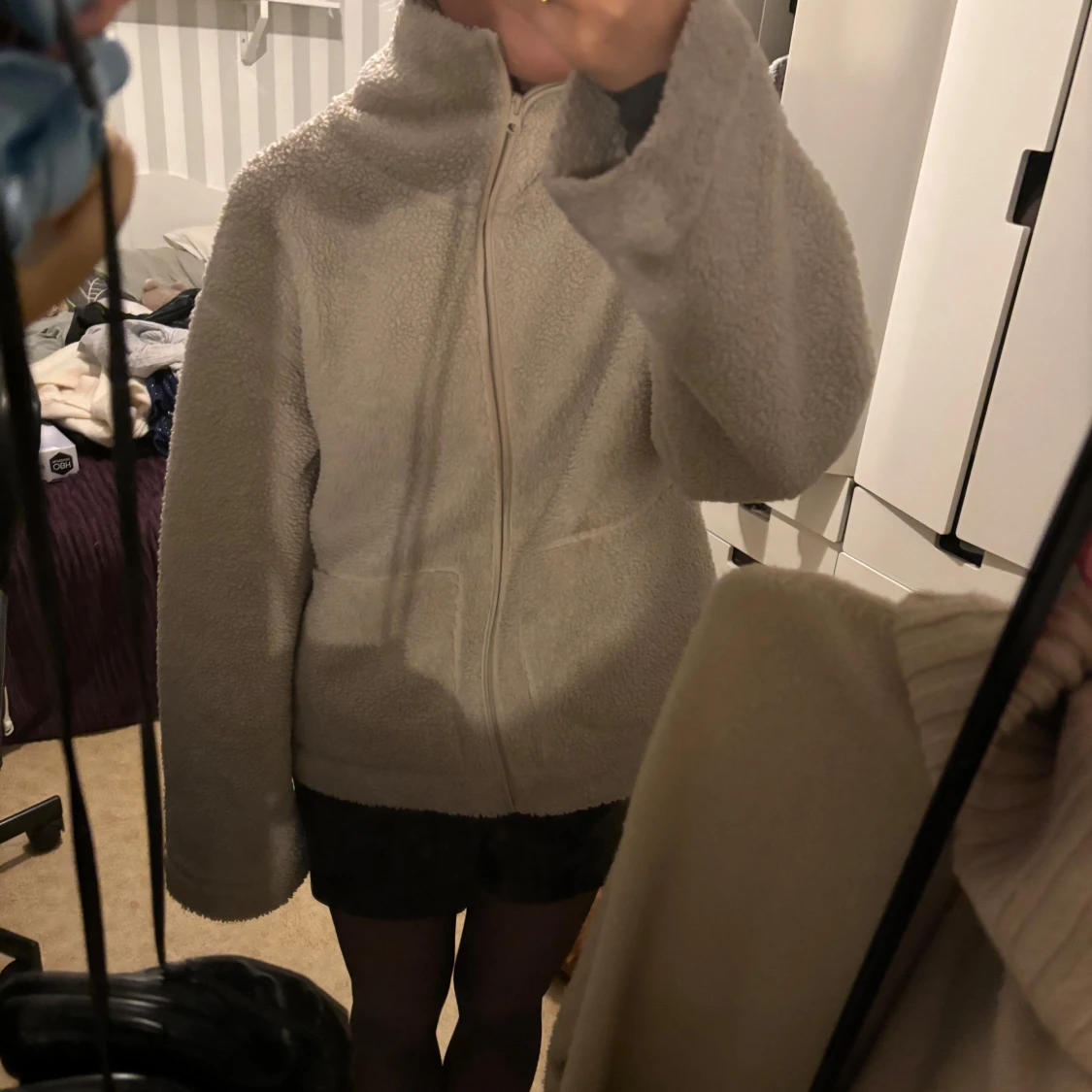 Mysig beige teddyjacka med dragkedja framtill. Perfekt för kyliga dagar med sin fluffiga och varma design. Jackan har långa ärmar och en hög krage för extra värme. En stilren och bekväm jacka för alla tillfällen💕