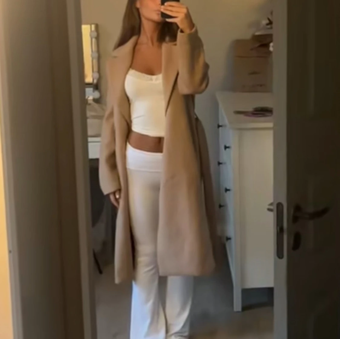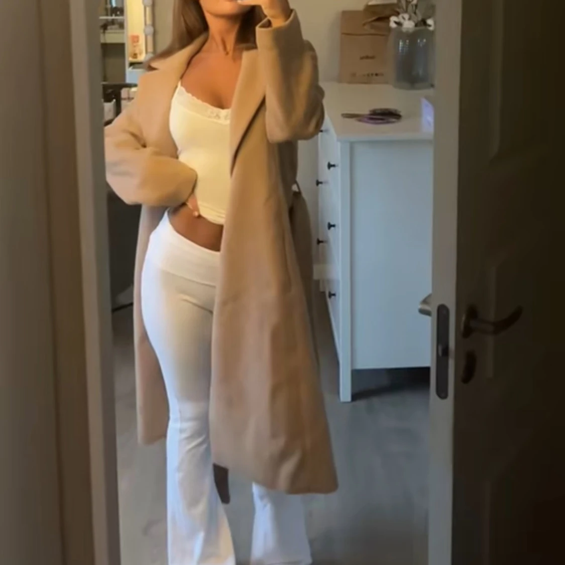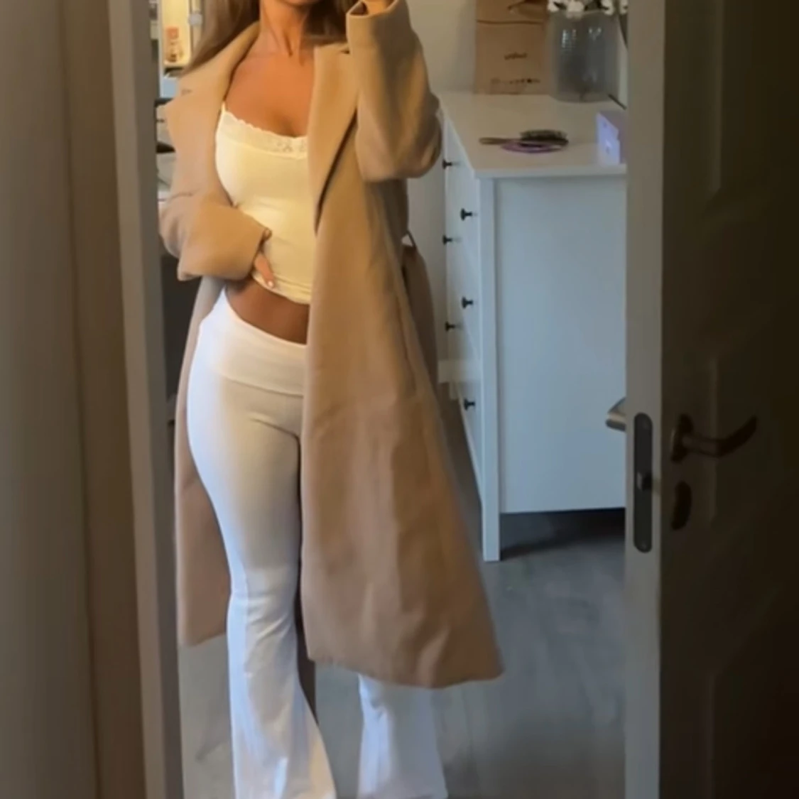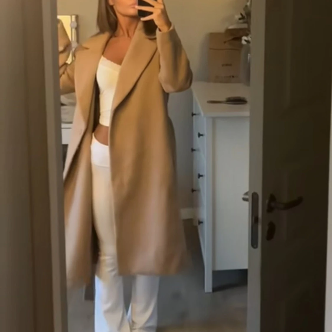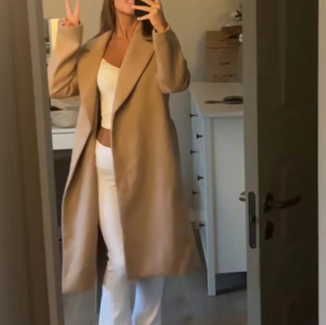 Beige lång kappa med bred krage