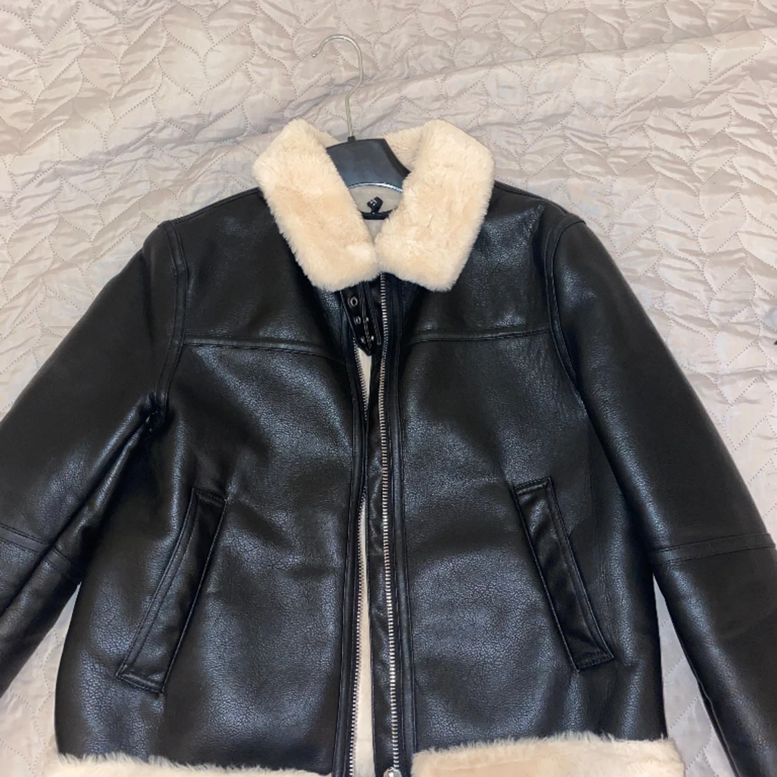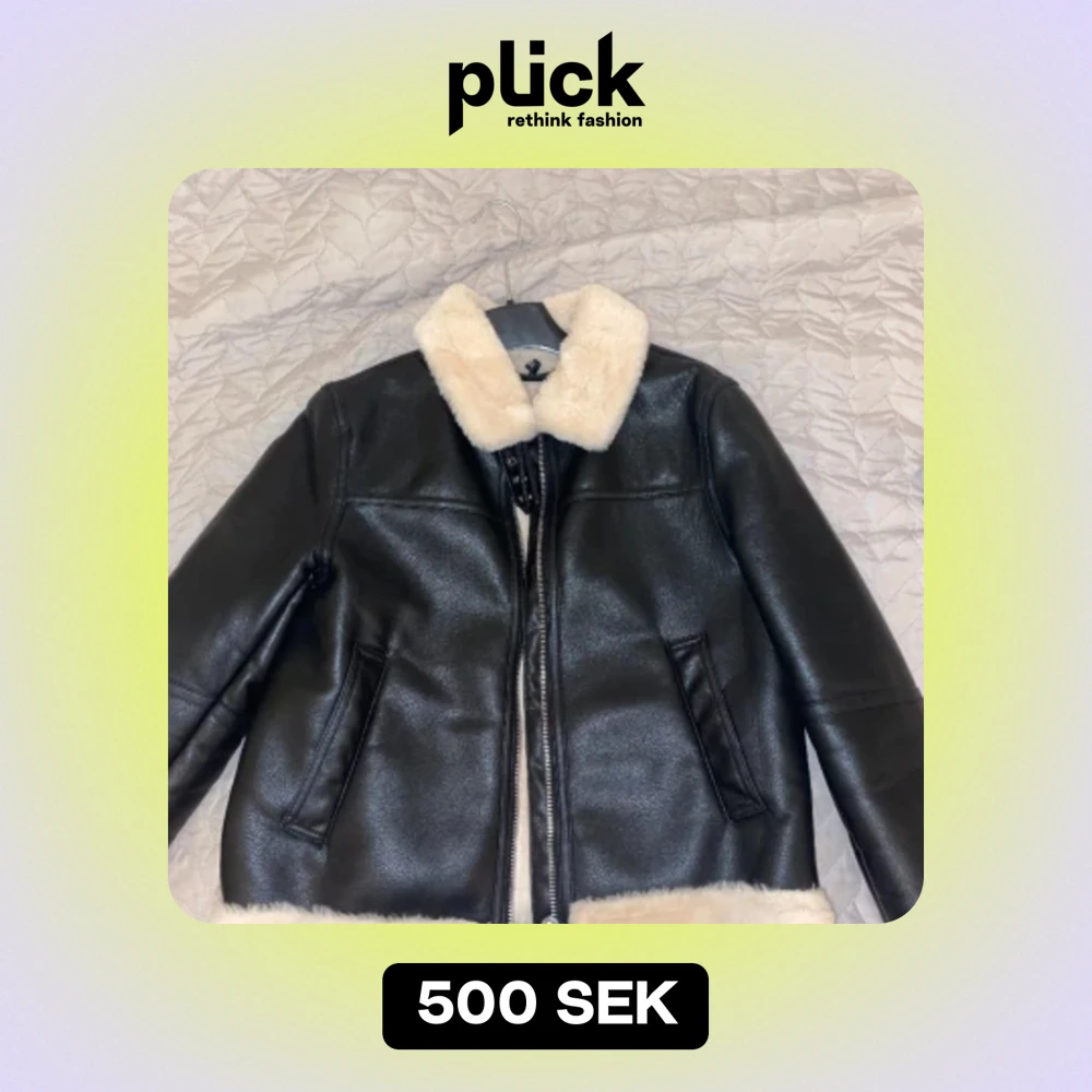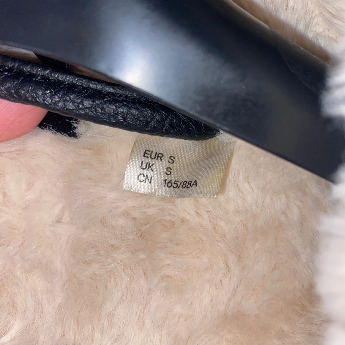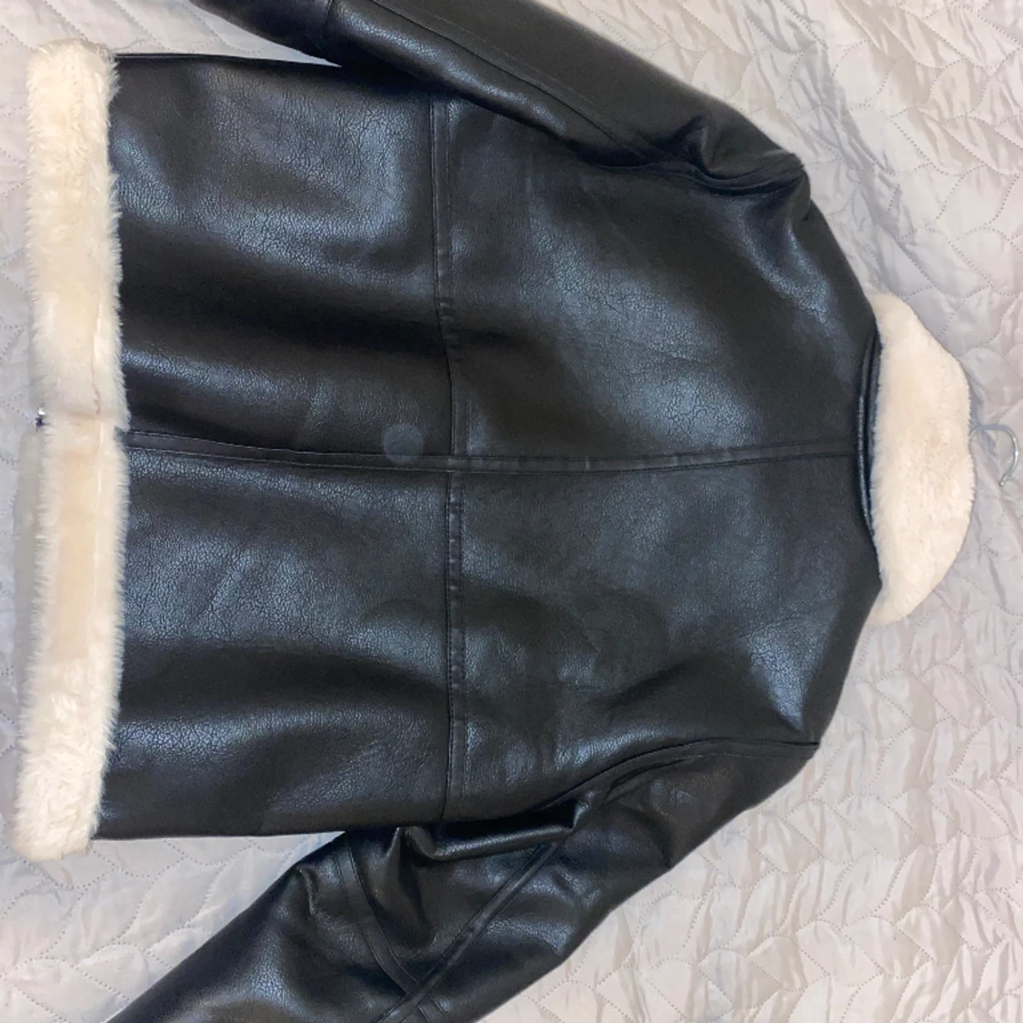 Skinnjacka med päls runt nacken och vid armarna. Fickor på båda sidorna. Sitter lite löst även om man har storlek S.