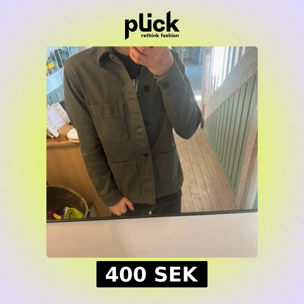 Säljer en stilren grön overshirt med knappar framtill och två stora fickor. Perfekt för lager-på-lager-stil. Passar bra till både vardag och mer avslappnade tillfällen.