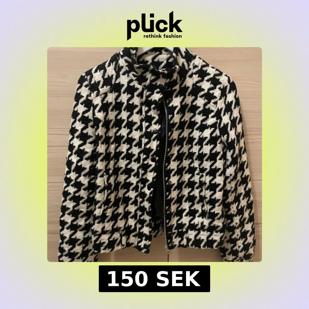 Svartvit rutig jacka med dragkedja