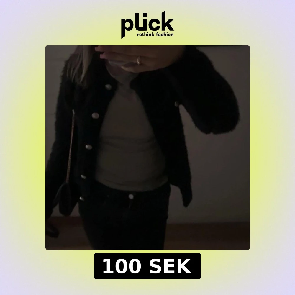 Säljer en svart teddyjacka med silvriga knappar framtill. Jackan har en klassisk rak passform och långärmade ärmar. Perfekt nu till hösten.