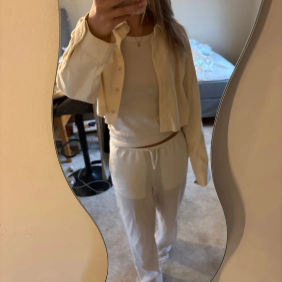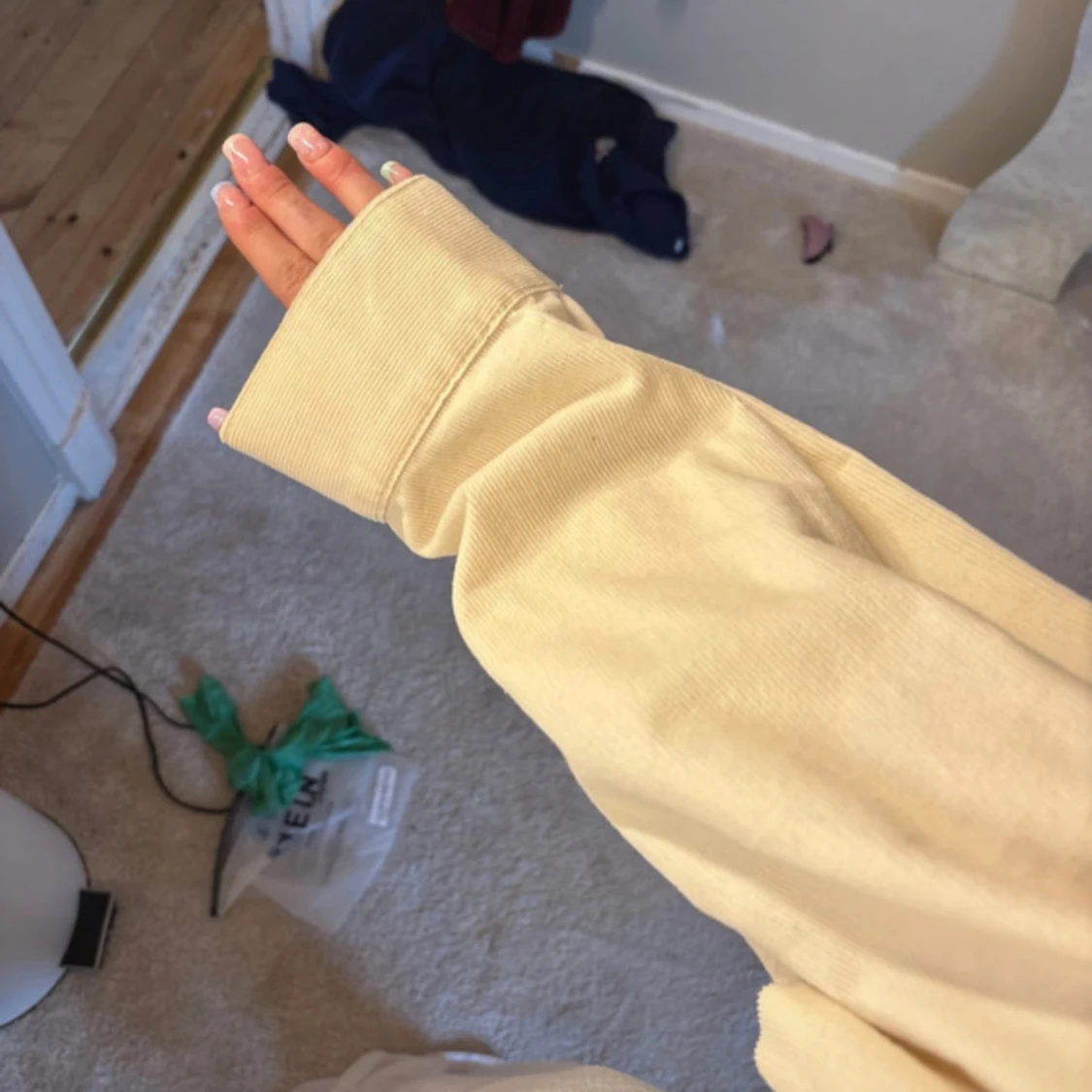 Säljer en beige croppad skjorta från Divided i manchestertyg. Skjortan har långa ärmar, klassisk krage och knäppning framtill. Perfekt för dig som gillar en chill och trendig stil. Passar snyggt till både jeans och mjukisbyxor.