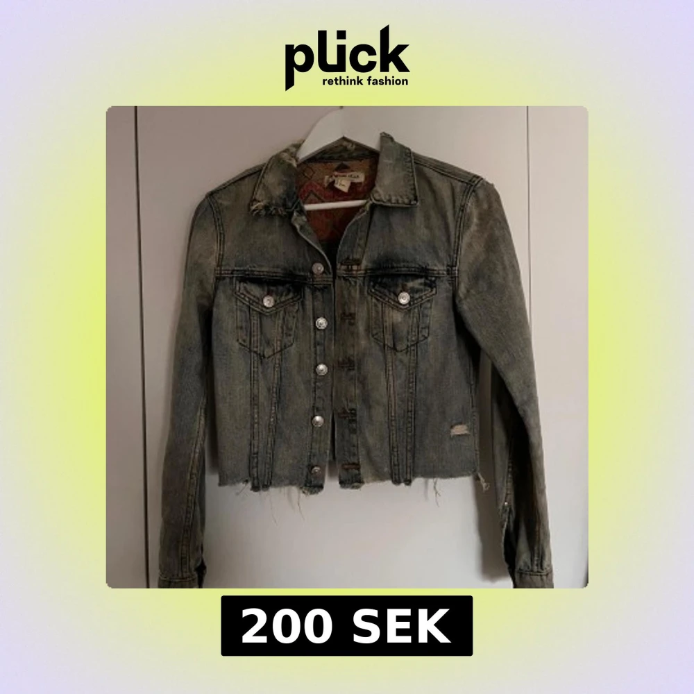 Jeansjacka från med slitna detaljer och fransig nederkant.