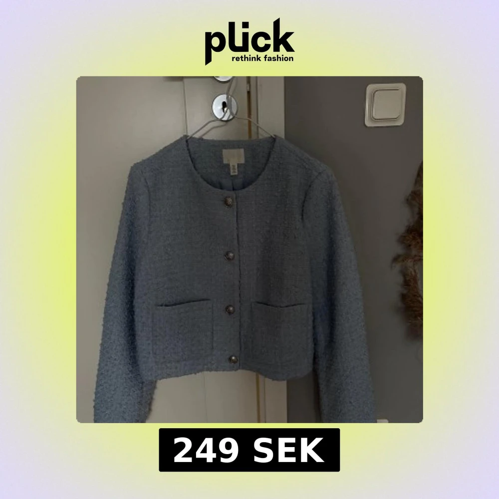 Snygg blå kofta från H&M med rund hals och silver knappar framtill.