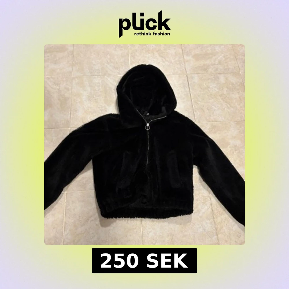 Mysig svart pälsjacka från H&M med luva och dragkedja framtill. Jackan har två fickor framtill. Storlek S, passar mig som är XS/S. Älskar denna men använder ej längre.