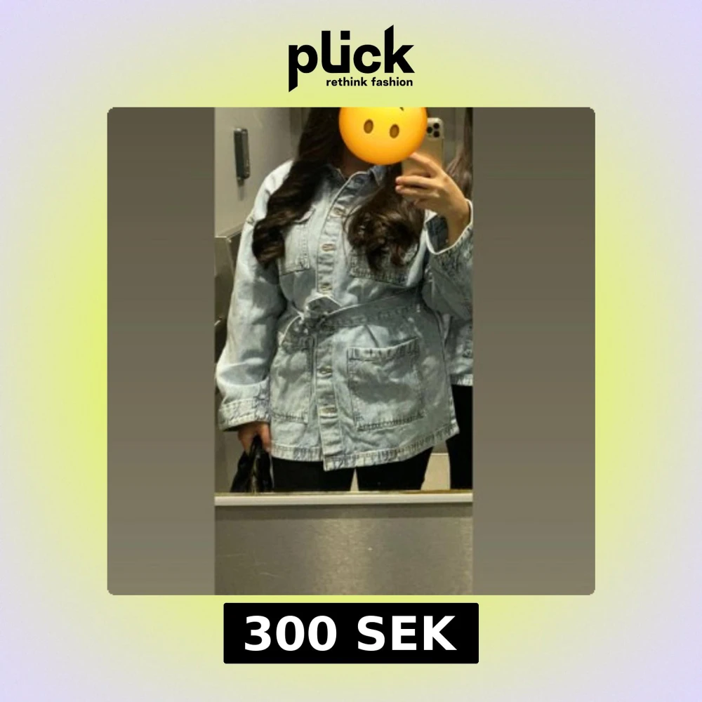 Säljer en oversized ljusblå jeansjacka med bälte i midjan och stora fickor framtill. Jackan har knappar hela vägen och långa ärmar. Perfekt för dig som gillar en chill och trendig look. (Helt slut såld på hm)