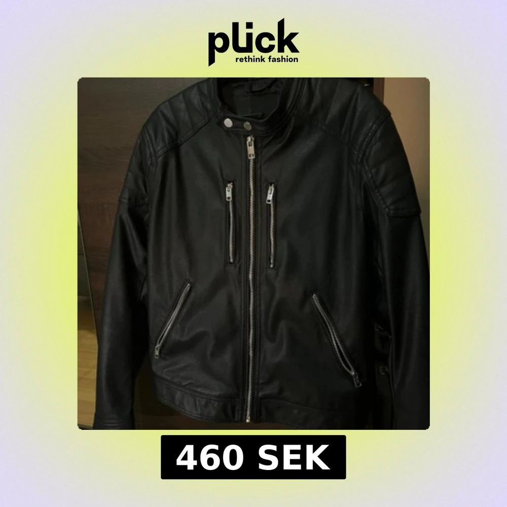 Säljer en svart skinnjacka med coola detaljer som du kan ha på dig nu i höst den är nästan oanvänd i väldigt fin skick