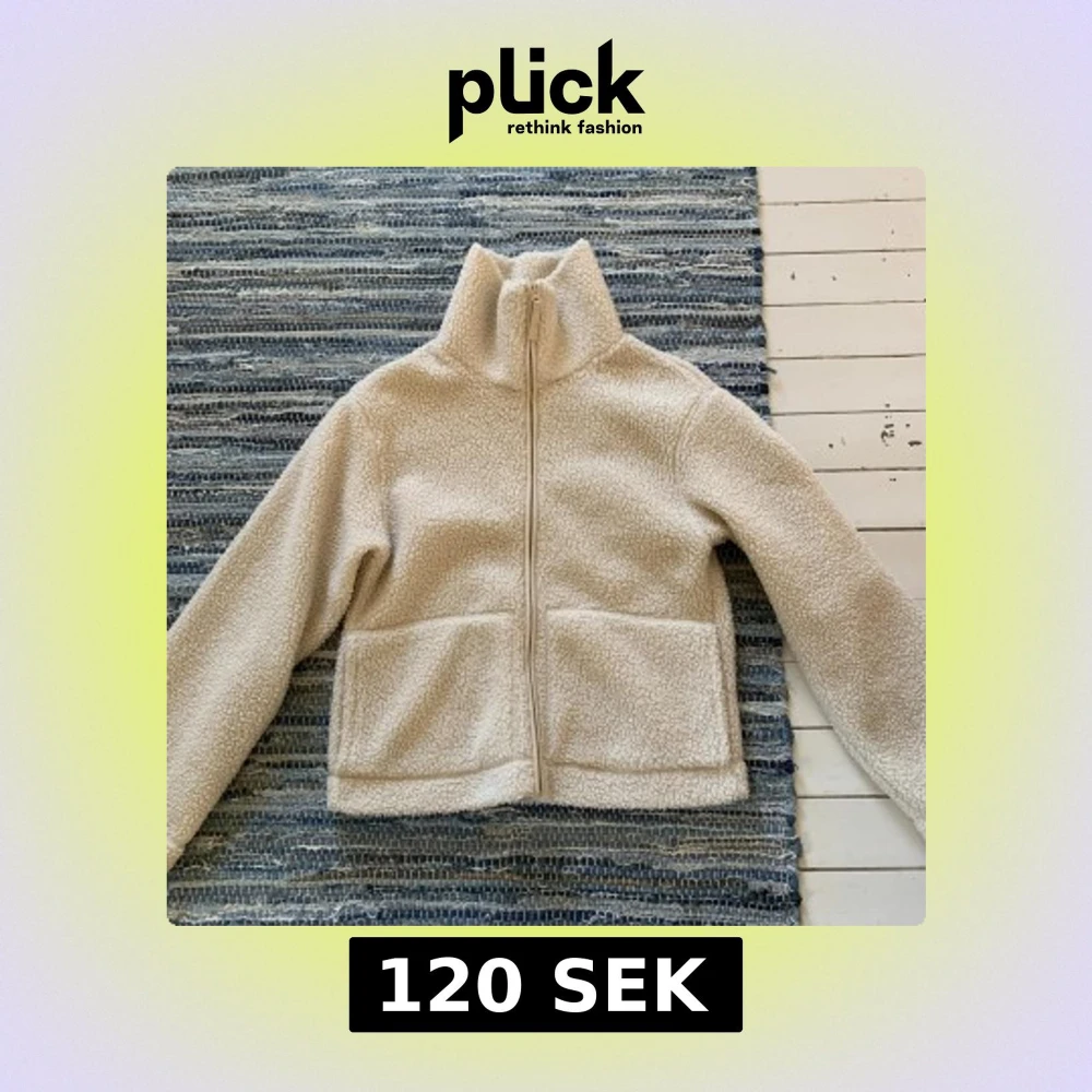 Mysig beige teddyjacka från H&M i storlek S. Jackan har hög krage, hel dragkedja framtill och två stora fickor. Perfekt för kyliga dagar när du vill vara både varm och snygg. Materialet är fluffigt och ger en riktigt chill vibe.