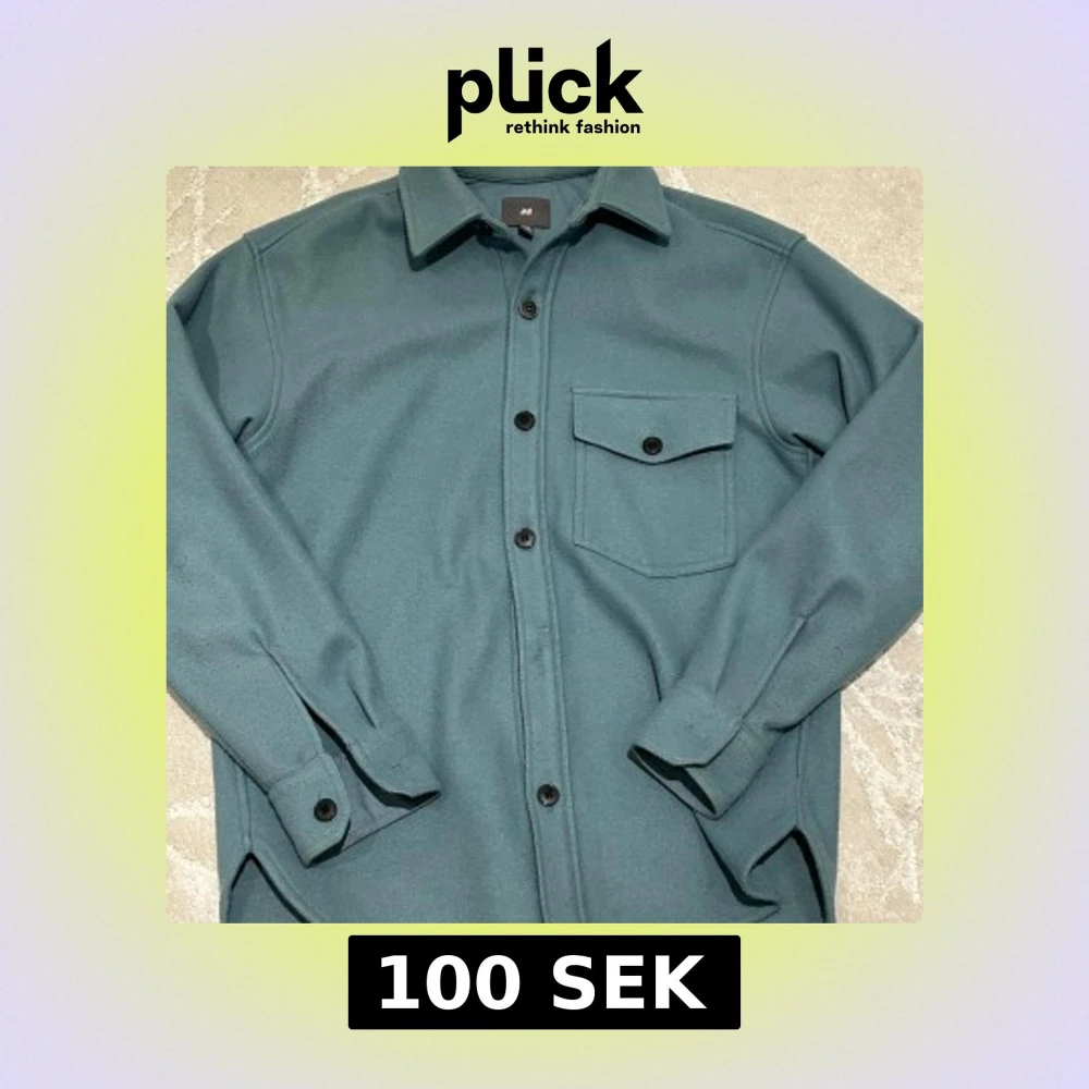 Stilren grön overshirt från H&M i ullblandning. Skjortan har klassisk krage, bröstficka med lock och svarta knappar framtill. Perfekt lager-på-lager-plagg med lång ärm och enkel, clean look.