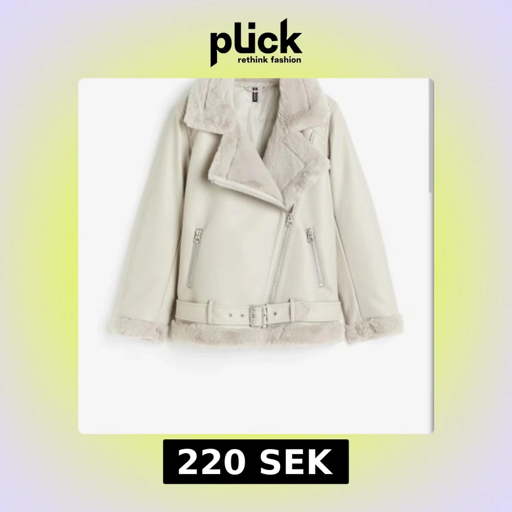 Snygg beige teddyjacka från H&M köpt för 670 med mjukt foder och detaljer i fuskpäls. Jackan har bred krage, dragkedja i sned modell, två fickor med dragkedja och bälte i midjan. Perfekt för kalla dagar när du vill vara både varm och trendig. Obs passar från L till XXL
