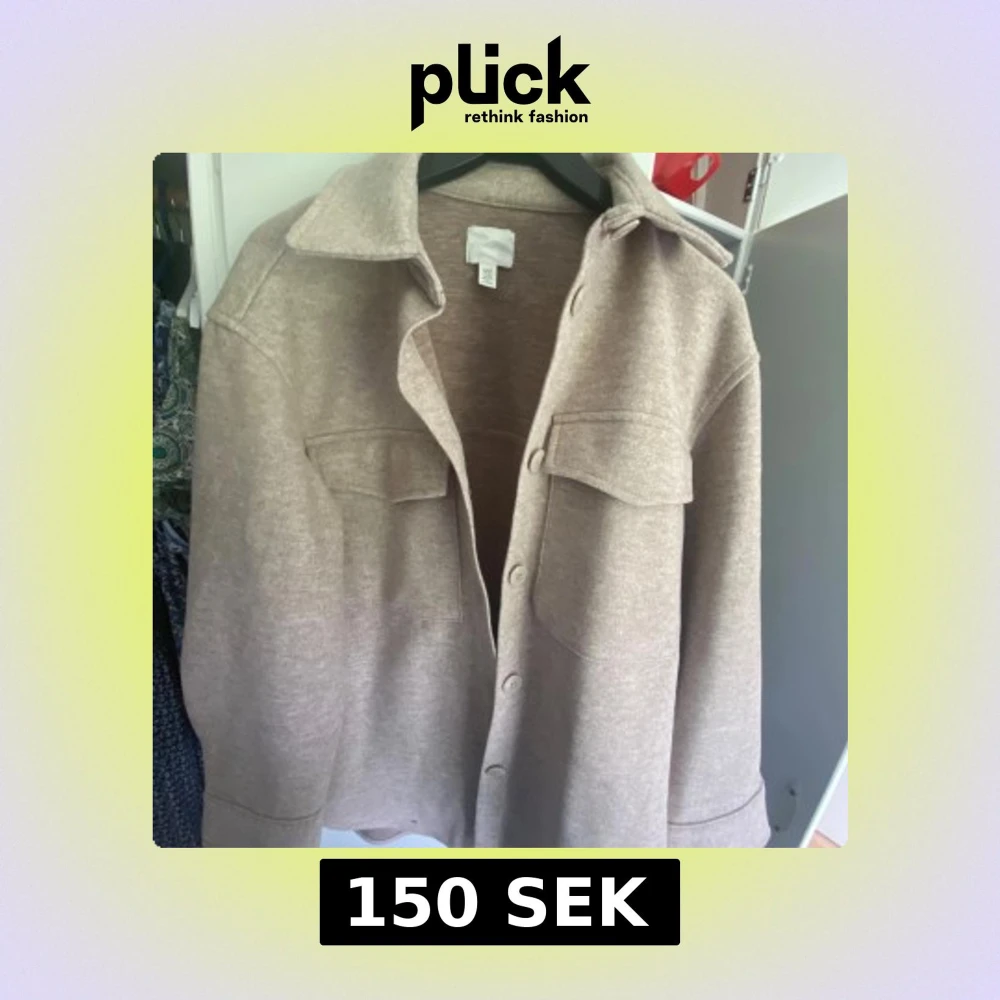 Snygg beige overshirt från H&M i storlek XS. Jackan har klassisk krage, stora bröstfickor med lock och knäppning framtill. Perfekt lager-på-lager-plagg med avslappnad passform och lång ärm. Enkel att styla till både jeans och kjol.