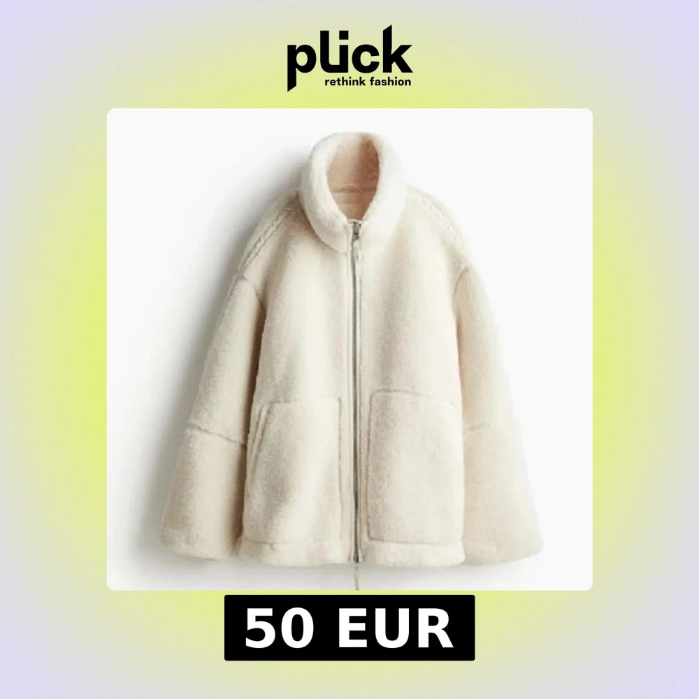 Mysig vit teddyjacka med dragkedja och hög krage. Perfekt för kyliga dagar med sin fluffiga och varma design. Jackan har långa ärmar och praktiska fickor framtill.