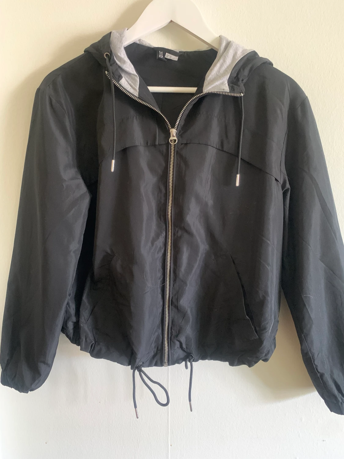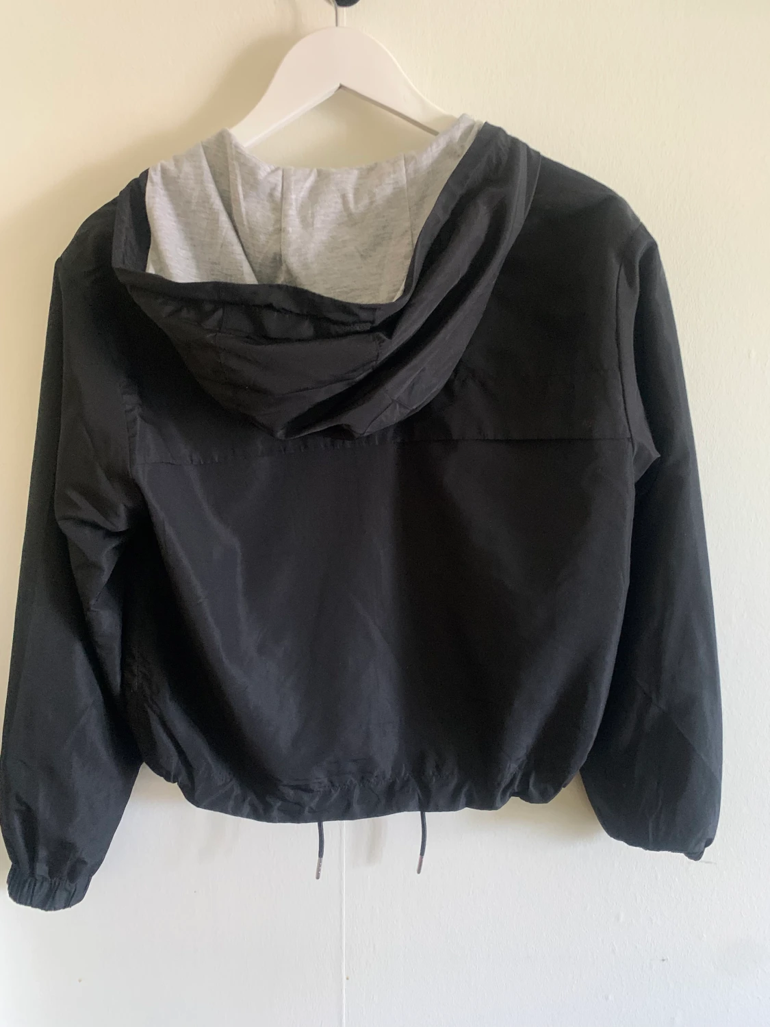Svart tunn jacka med spännbara band, ganska gamal men i fint skick, storlek xs men stor i storleken