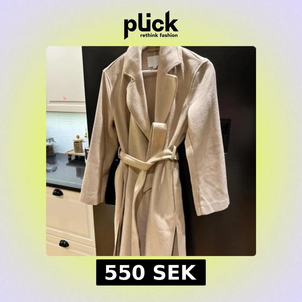 Stilren beige kappa med klassisk krage och bälte i midjan. Jackan har långa ärmar och en rak, lite loose passform. Materialet är mjukt och känns som ullblandning. Perfekt för dig som gillar en clean och tidlös look.