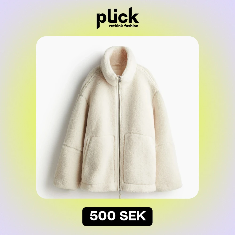 Mysig vit teddyjacka. Den har en dragkedja framtill och stora fickor för extra värme och stil. Jackan är långärmad och har en hög krage som skyddar mot vind. Perfekt för både höst och vinter!
