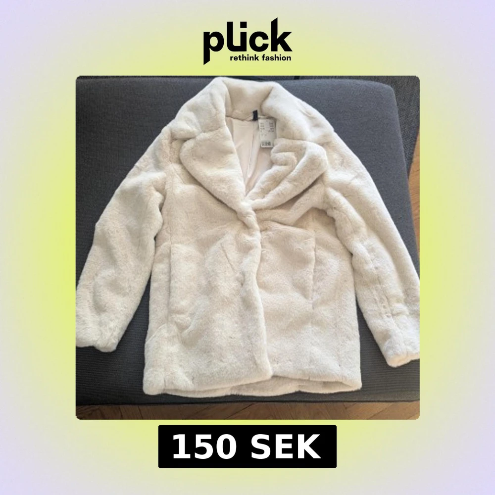 Säljer en fluffig vit pälsjacka från H&M med bred krage och lång ärm. Jackan har en lyxig känsla och är perfekt för att hålla värmen under kyliga dagar. Enkel att matcha med olika outfits.
