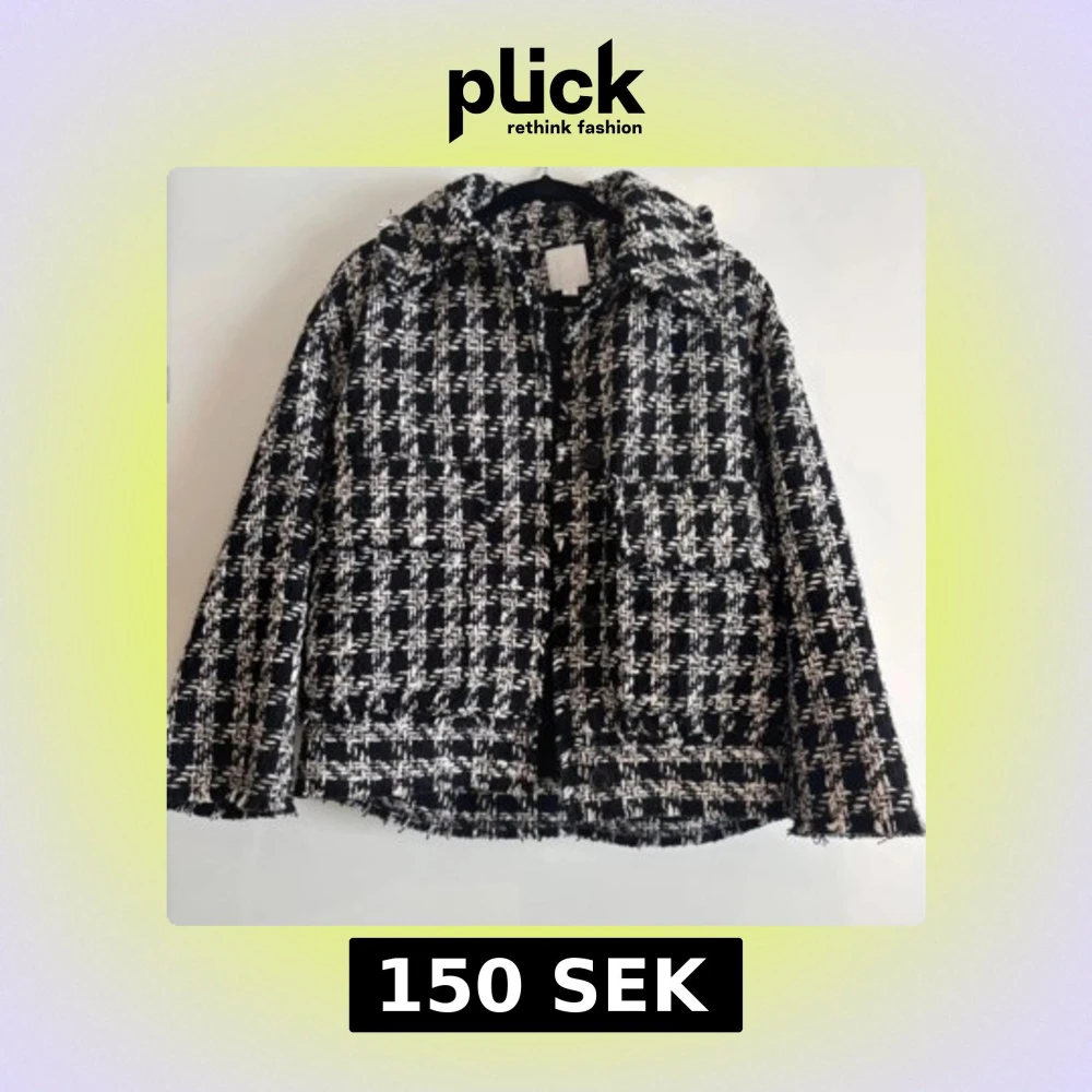 Snygg svartvit rutig tweed jacka från H&M med grov struktur och stora fickor framtill. Jackan har klassisk krage, två fickor och är tillverkad i ett tjockare tyg som ger en cool och trendig look. Perfekt för dig som gillar statement-plagg.