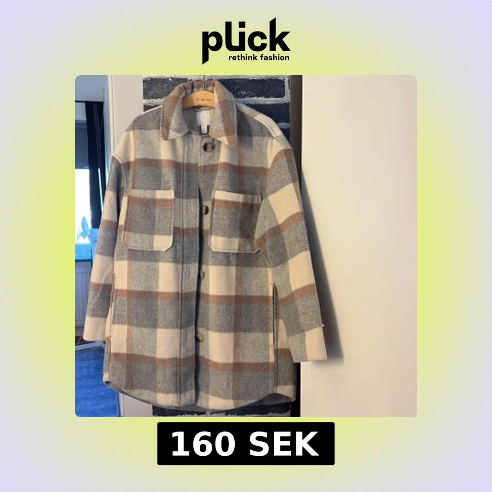 Overshirt i beige, grått och brunt rutmönster med stora fickor framtill och knappar längs hela framsidan. Jackan har klassisk krage och är tillverkad i en mjuk ullblandning. Perfekt för lager-på-lager och en chill look. OBS! STOR I STORLEK