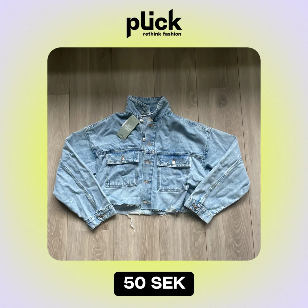Säljer en supercool ljusblå jeansjacka från HM. Den är croppad med rå kant och har en avslappnad passform. Jackan har knappar framtill och två stora fickor på bröstet. Perfekt för vår och sommar! 🦋