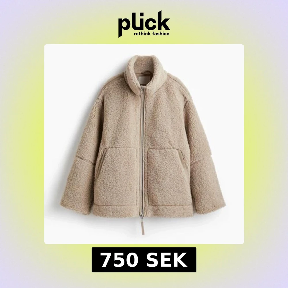 Mysig beige teddyjacka med hög krage och stora fickor framtill. Jackan har en rak, loose passform och stängs med dragkedja. Perfekt för kyliga dagar när du vill vara både varm och snygg. Helt ny med prislapp kvar, testar en gång