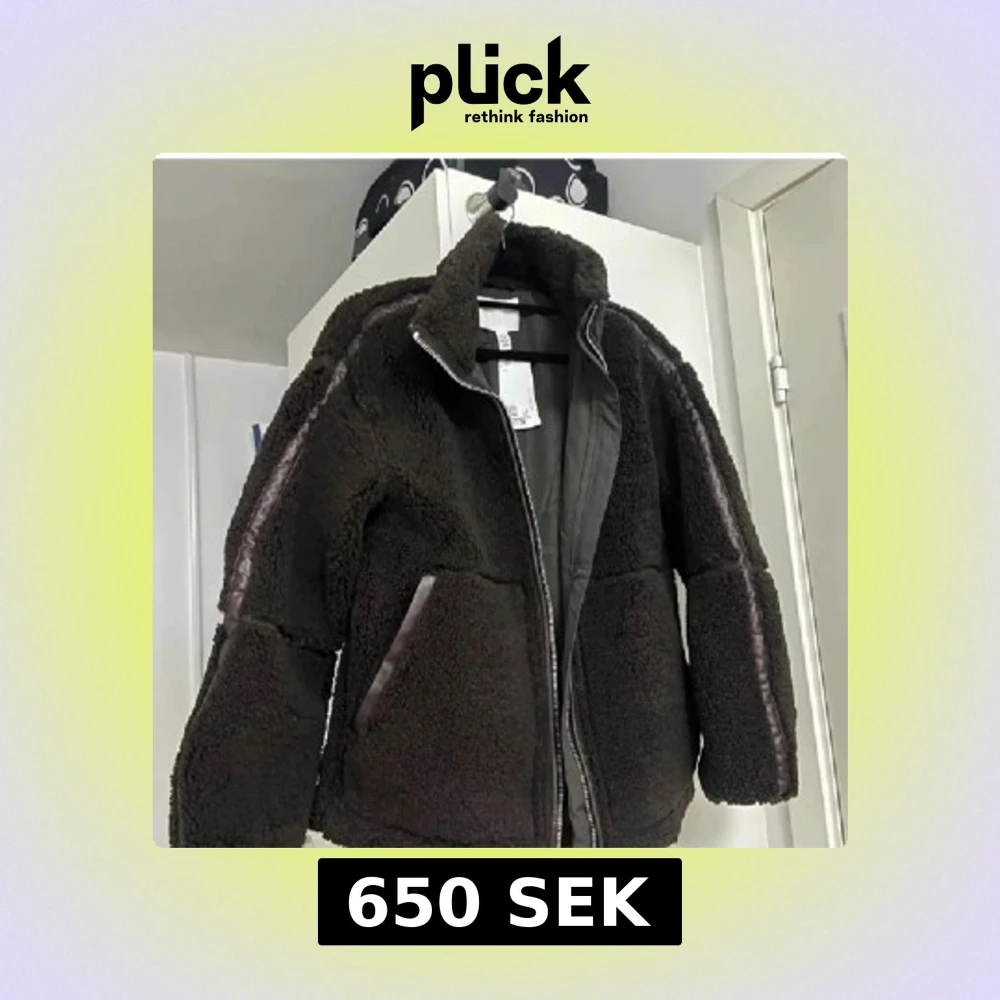 Mysig mörkbrun teddyjacka från H&M med hög krage och hel dragkedja framtill. Jackan har detaljer i skinnimitation längs ärmar och vid fickor, samt en schysst loose passform. Perfekt för kalla dagar när du vill vara både varm och snygg. Köpt här på plock, prislapp kvar. Passar mig som vanligtvis har 32/xs