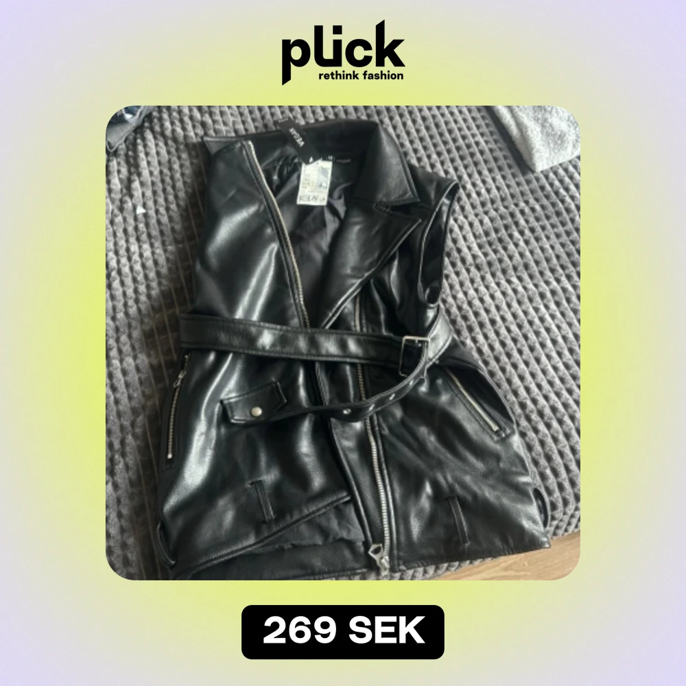 En väst material av skinn, aldrig använd, storlek XXS, västen är vegan. Den har en bälte med med silver hål på.