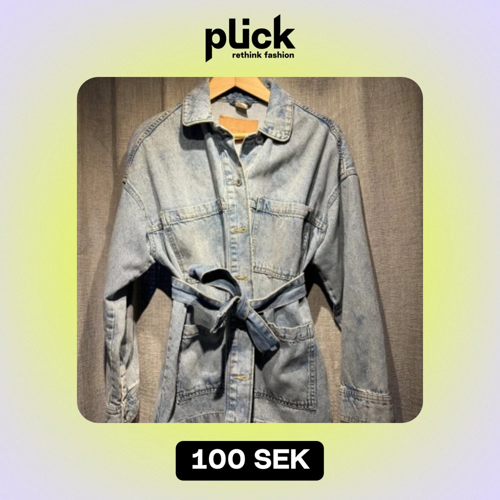 Jeansjacka från H&M med bälte i midjan. Använd men i gott skick! Något stor i storleken.