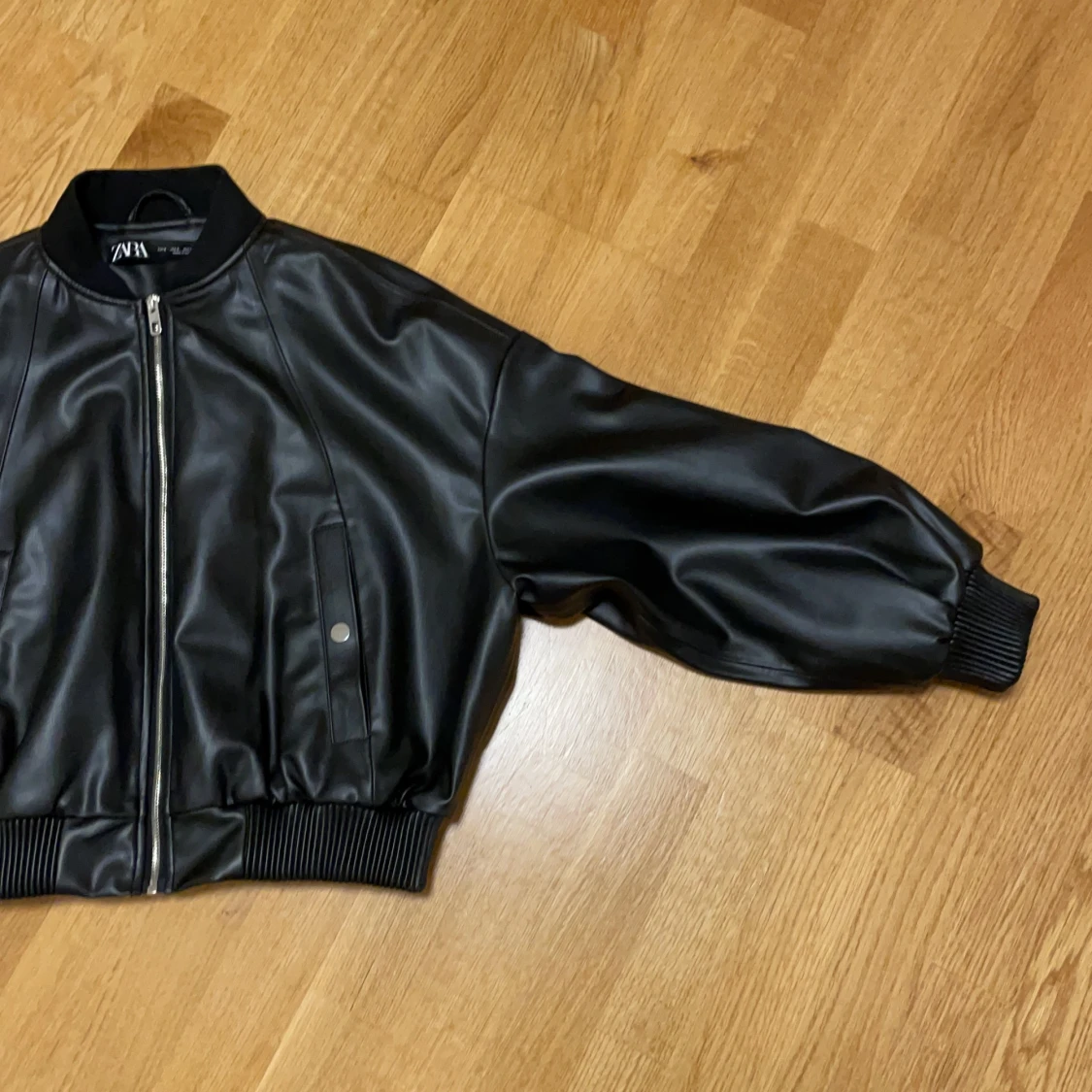 Säljer denna skitsnygga skinnjacka/bomberjacka från Zara. Knappt använd och är i gott skick! Priset ligger på 250 kr exslusive frakt. Skriv privat om du är intresserad❤️