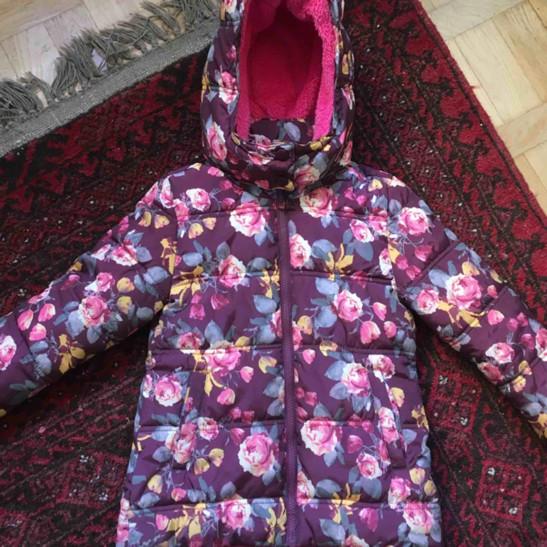 En jättemysig barnjacka i stl 116. Den har värmande foder och är perfekt för utelek! Den är din för bara 70 kr!