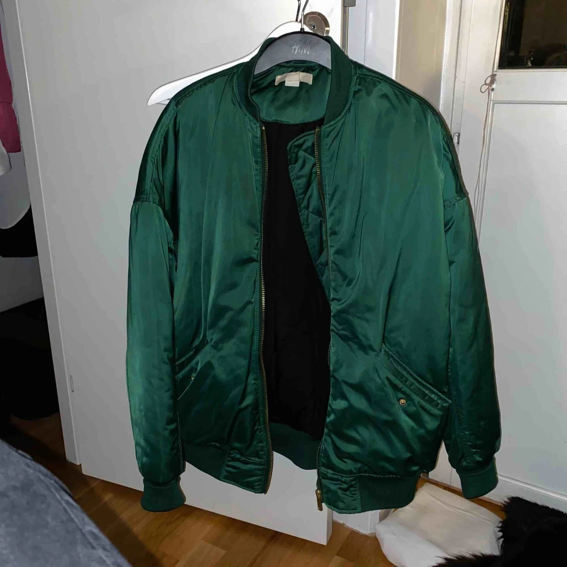 Grön bomberjacka från hm. Står strlk 34 men den är stoooor på mig som är 167. Tjockare foder funkar under vintern med en tjocktröja. Möts upp i Stockholm eller så står köparen för frakt