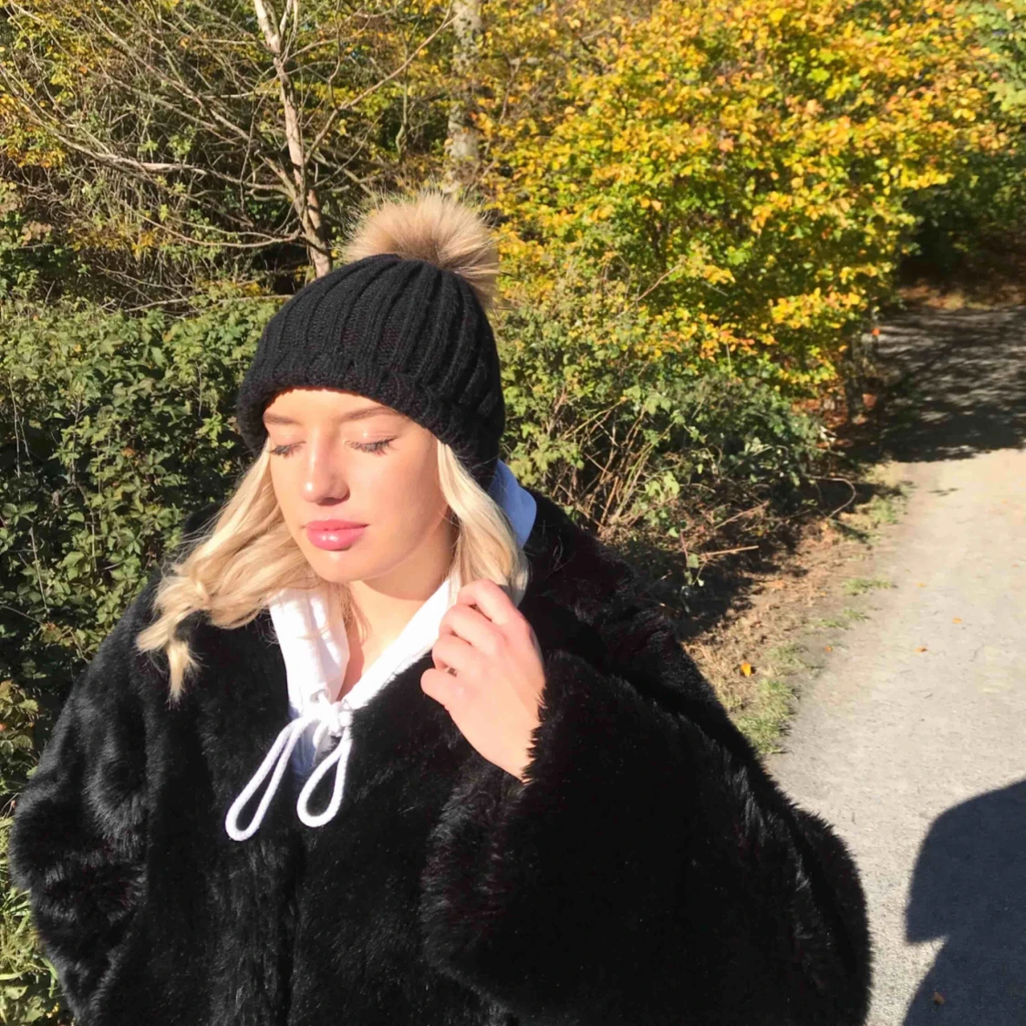 Svart jacka från hm i fuskpäls. Vida armar och slutar vid höfterna. Vid ena armen har en tråd gått upp. Den är väldigt varm och jag använde den som vinterjacka förra året men säljer pga den inte kommer till användning.