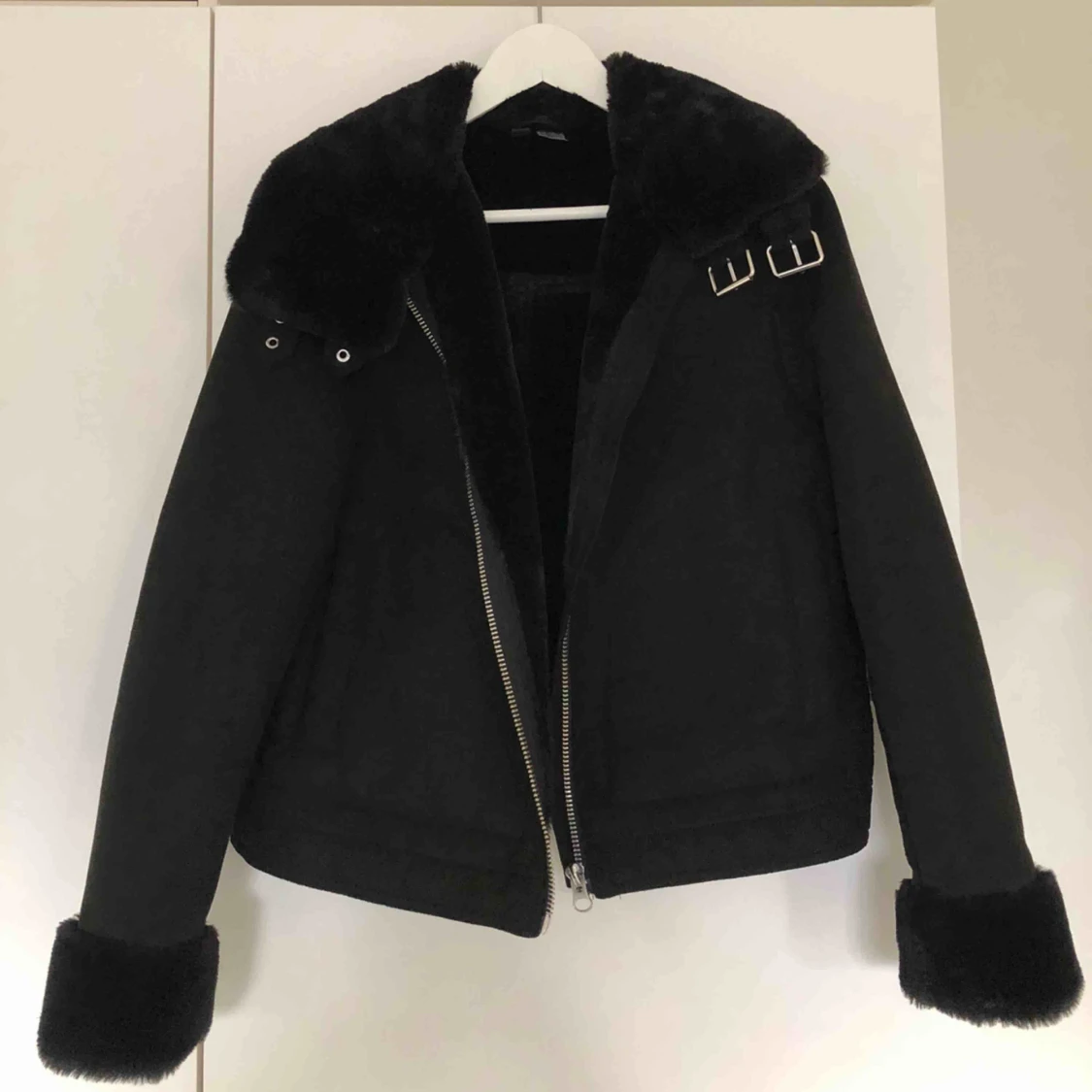 Jacka från HM. Använd sparsamt! Inköpt för 600kr. Säljer pga av har ingen användning för den. Den har fake ”päls” på insidan och funkar därför bra under vintern :)