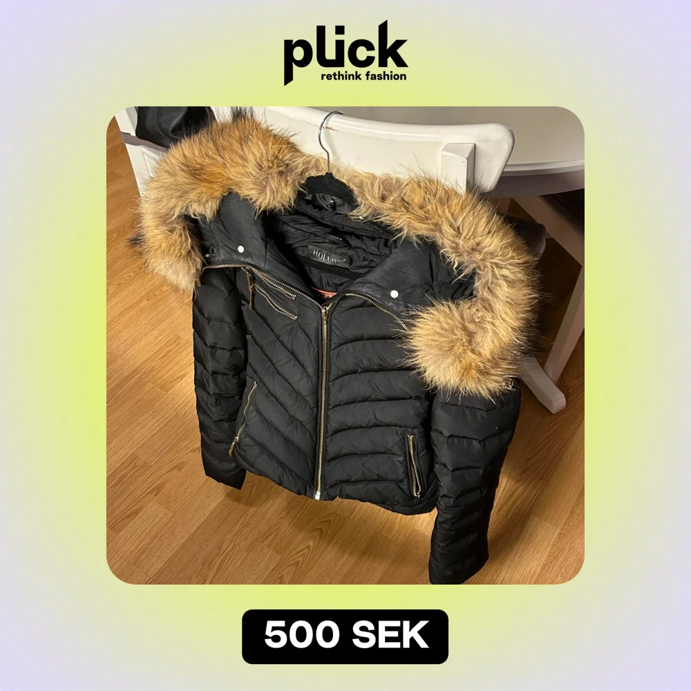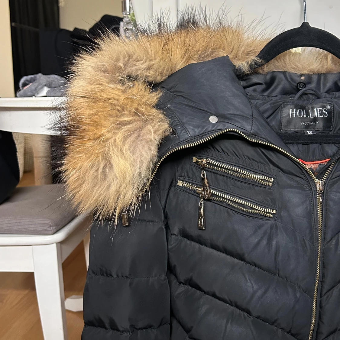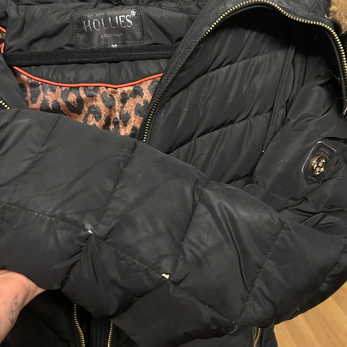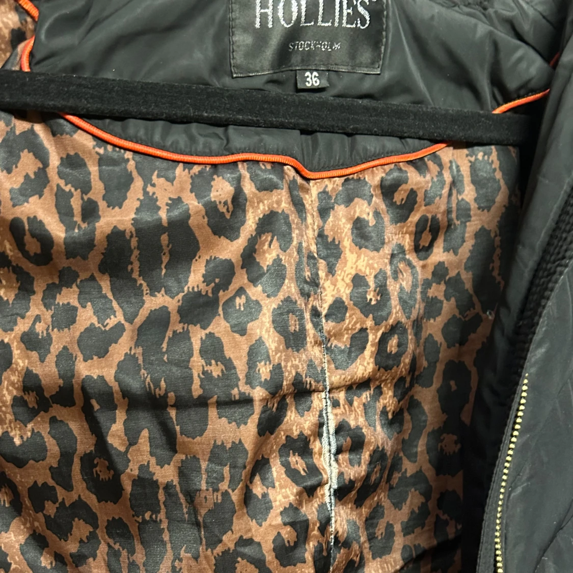 Hollies jacka i storlek 36/S. Förutom 2 små slitningar på armbågen (se näst sista bild) och på ett ställe inuti jackan (se sista bild) så är den i bra skick.
