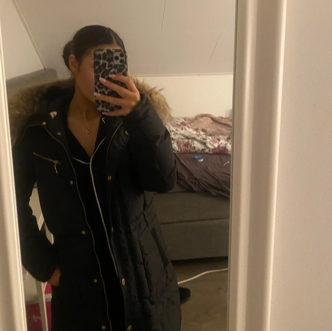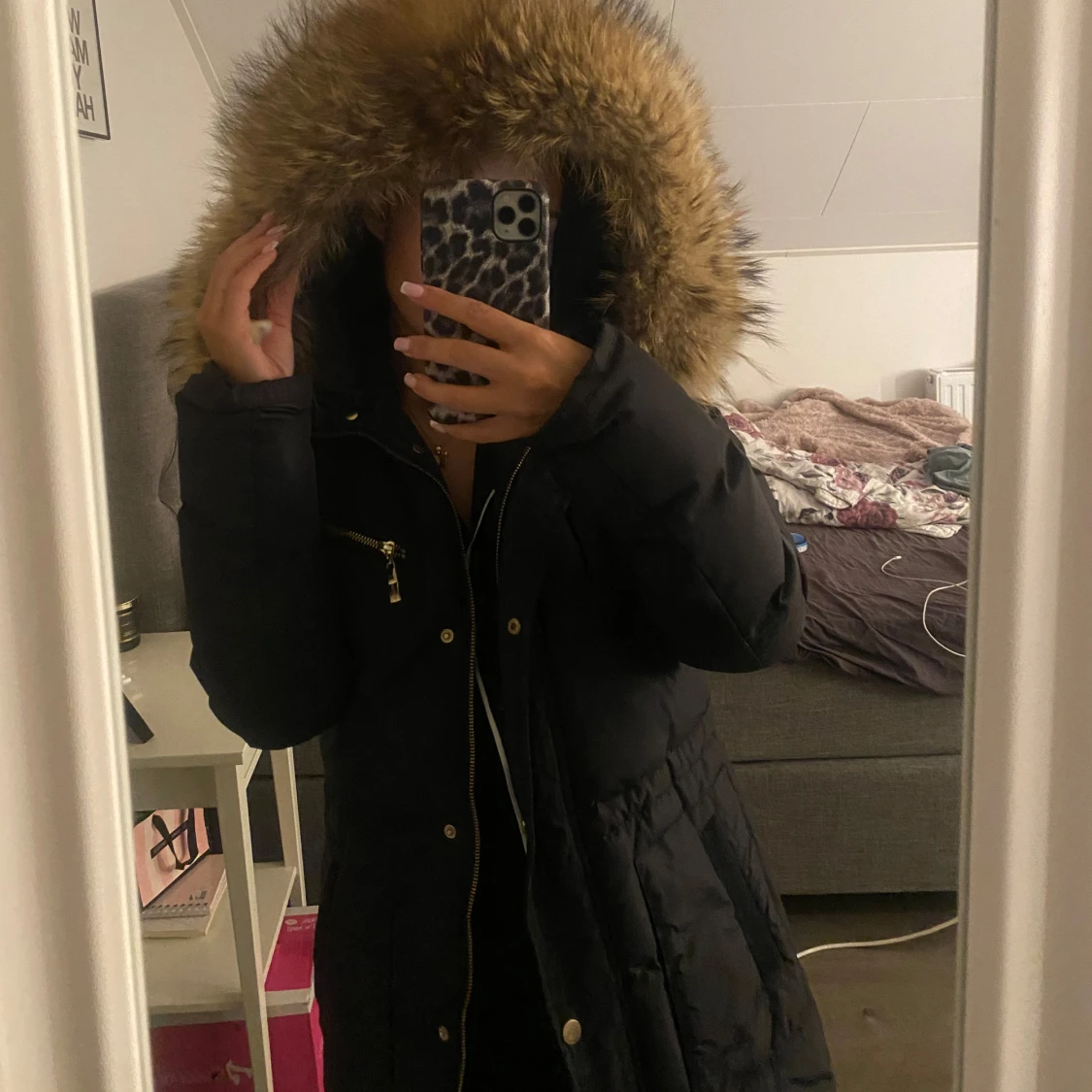 Snygg svart hollies med huva och pälsdetaljer. Jackan har dragkedja och är äkta päls och äkta märke. Säljer den för att den sitter lite för stor för mig. Perfekt för kyliga dagar och knappt användt, ingen fel eller skada på jackan. kan även diskutera om priset privat, skriv jättegärna privat för frågor.