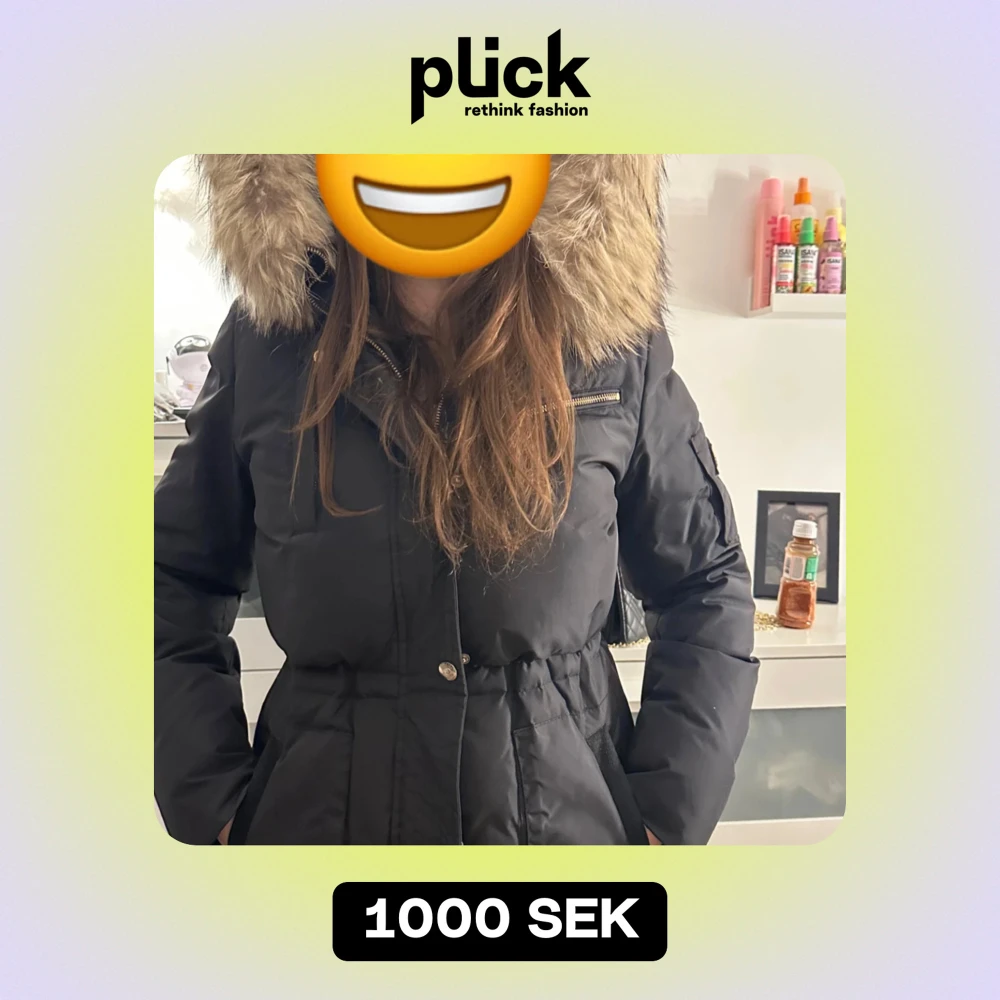 En Hollies jacka i äkta tvättbjörn päls. Använd två vintrar. Nypris ca 4500kr går att buda.